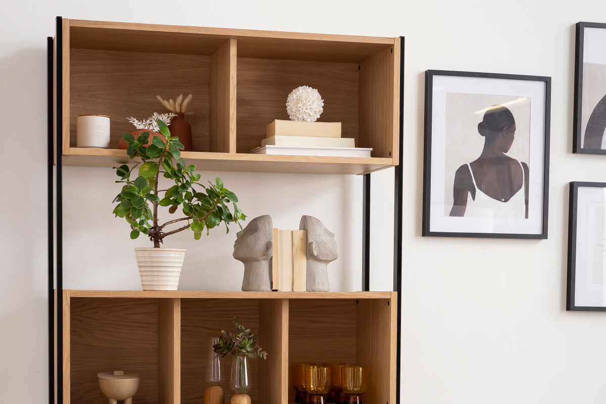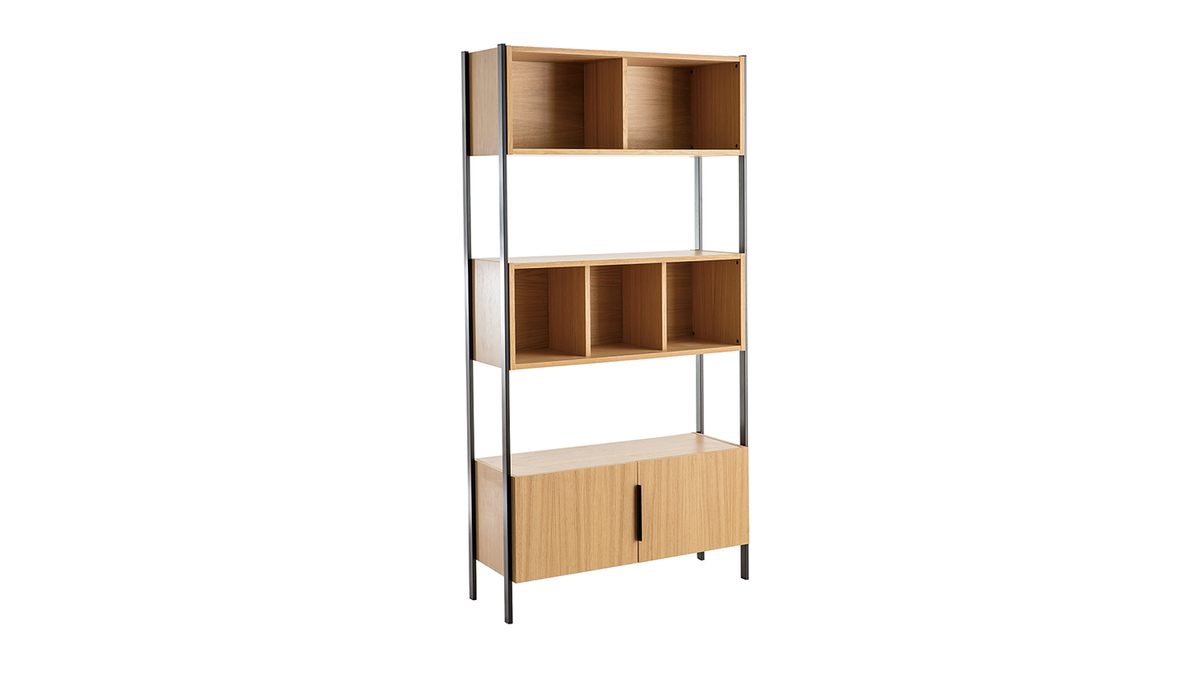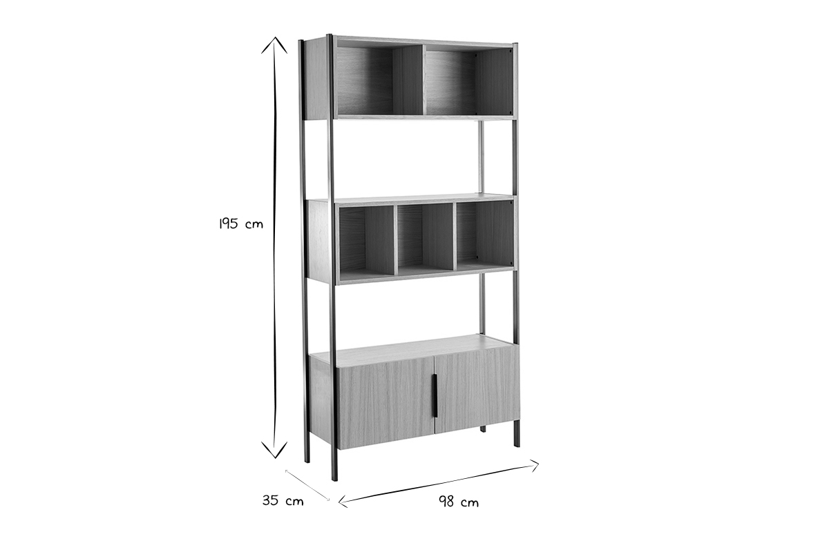 En plus d'être hyper stylée, cette bibliothèque fabriquée en Europe est très fonctionnelle : elle dispose de 5 niches ouvertes et de 2 rangements fermés. C'est un meuble pratique qui apporte des espaces de rangement aux pièces qui en manque.