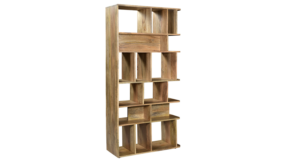 Bibliothèque en manguier massif avec niches, vue de 3/4.