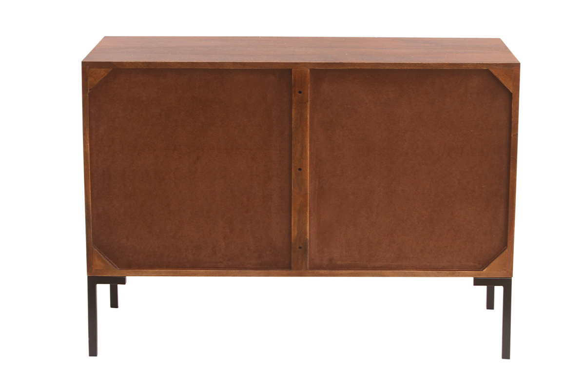 Matière : manguier massif, métal et dos en panneaux de fibres de bois