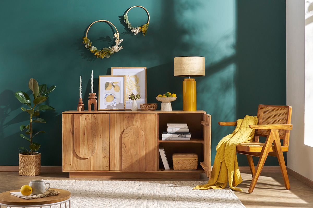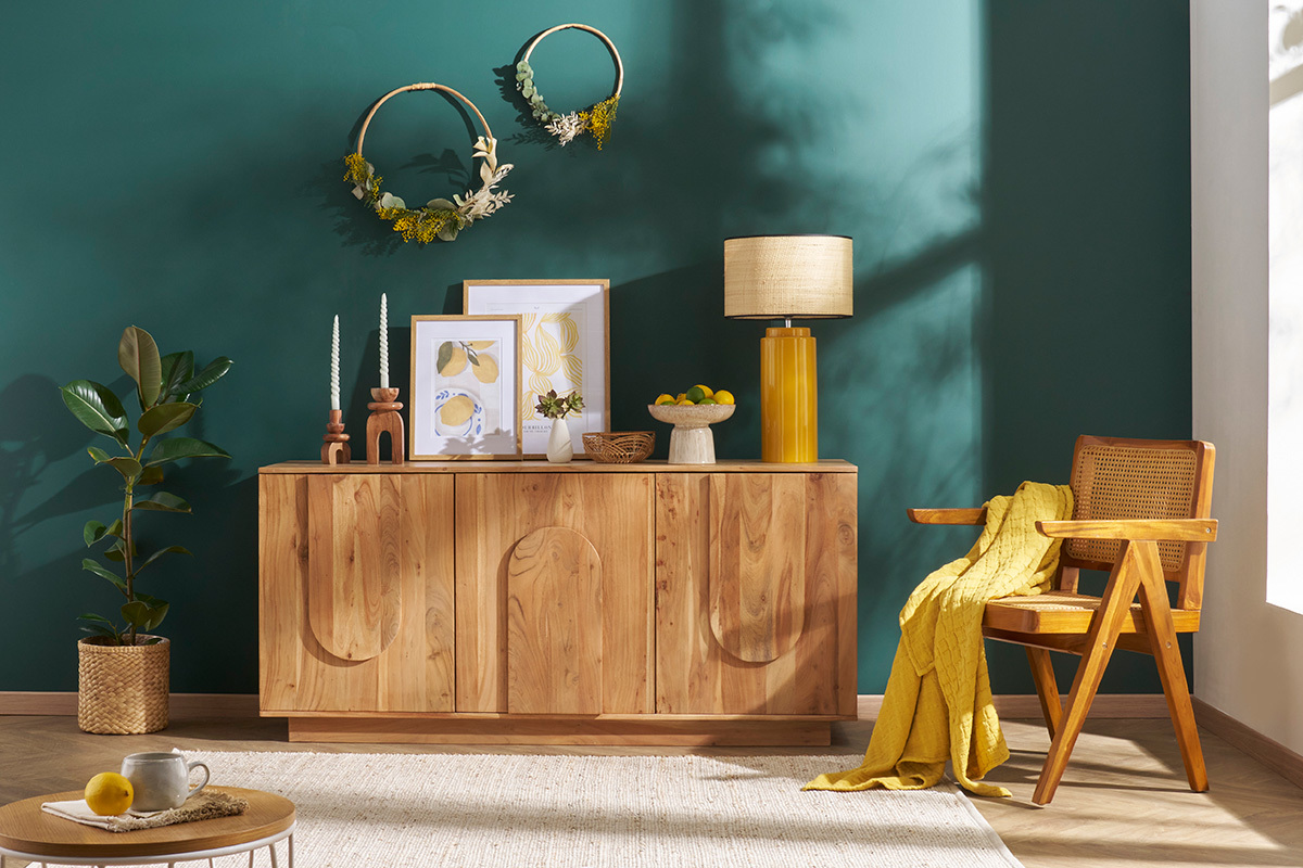 Ce long buffet au look chaleureux s'imposera avec style au coeur d'une déco ethnique chic, japandi, scandinave ou contemporaine ! ARK est un meuble de caractère qui donnera instantanément beaucoup de cachet à votre pièce tout en instaurant une ambiance chaleureuse. Accompagnez-le d'une table à manger ou d'une table basse en manguier !