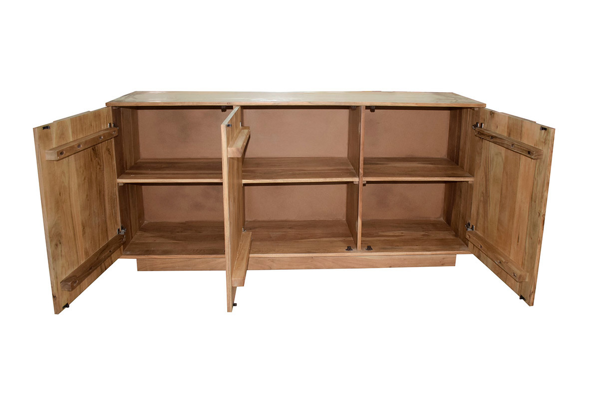 Mariage parfait entre le beau et le fonctionnel, ARK dévoile derrière ses 3 portes, 6 grandes niches qui accueilleront tous vos essentiels. Placé dans le séjour, la cuisine ou dans un bureau, ce grand buffet en bois massif sera parfait pour ranger de la vaisselle et des petits appareils ménagers, ou encore pour stocker des livres et des documents.