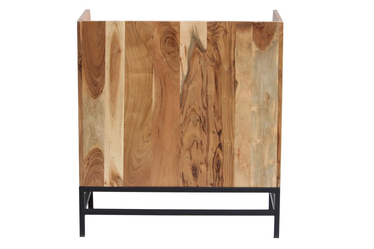 Ce buffet en bois est réalisé en acacia massif selon un savoir-faire artisanal unique. Cette essence de bois aux nuances uniques, rougeoyantes et infiniment chaleureuses, réchauffe en douceur nos intérieurs. L'ensemble est soutenu par un piètement en métal noir. Cette belle association de matières s'accorde avec tous les styles de décoration, de l'industriel, au vintage en passant par le contemporain.