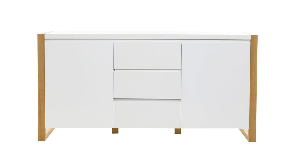 Pratique et moderne, le buffet design ARMEL sera idéal dans un salon ou une salle à manger contemporaine. Ses dimensions généreuses et ses différents espaces de rangement (2 espaces avec étagères fermés par 2 portes et 3 tiroirs) permettront d'optimiser vos rangements.