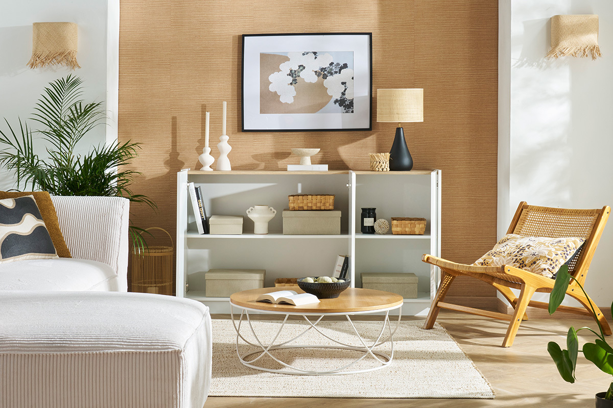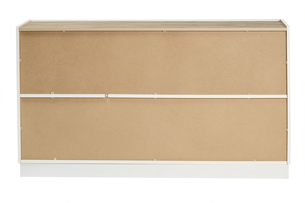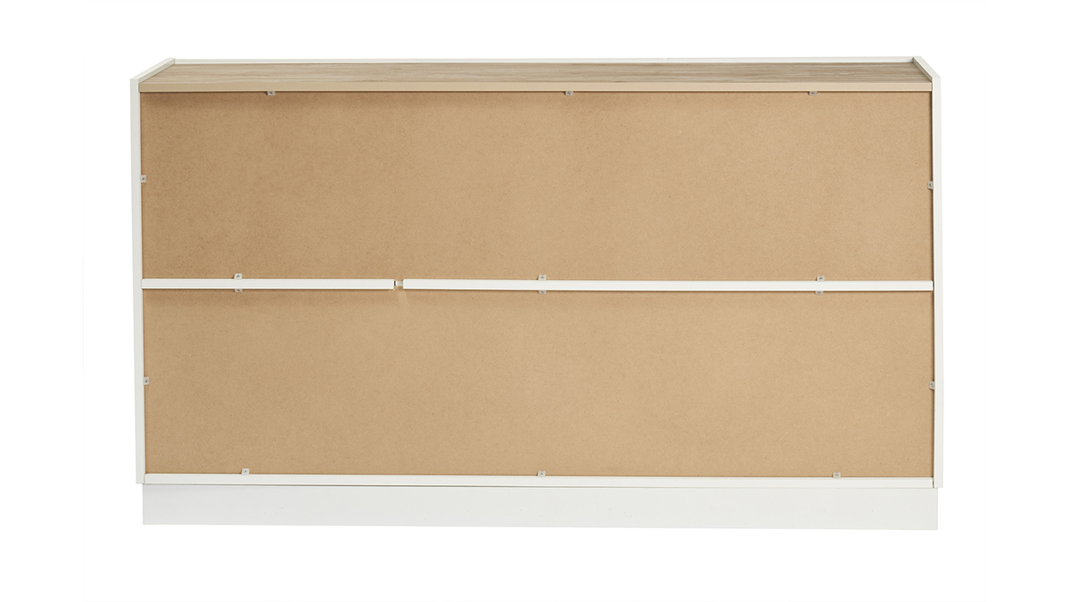 Si le plateau finition bois clair (panneaux de fibres de bois mélaminé finition chêne clair) charme par ses jolies nuances et son caractère authentique, la structure blanche finition laquée offre une belle note de modernité à l'ensemble. Grâce à ce buffet design blanc et bois sans pied ajoutez une touche tendance et non moins chaleureuse à l'ambiance de votre pièce de vie ! Idéal pour habiller l'espace et offrir une pièce de vie organisée, ce buffet bas design (dimensions L155 x P40 x H86.5 cm) - qui mêle codes scandinaves et contemporains - sera à l'aise dans de nombreux styles d'intérieur.