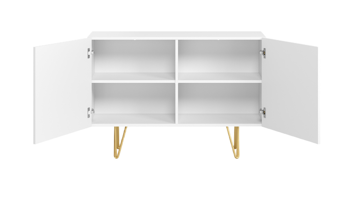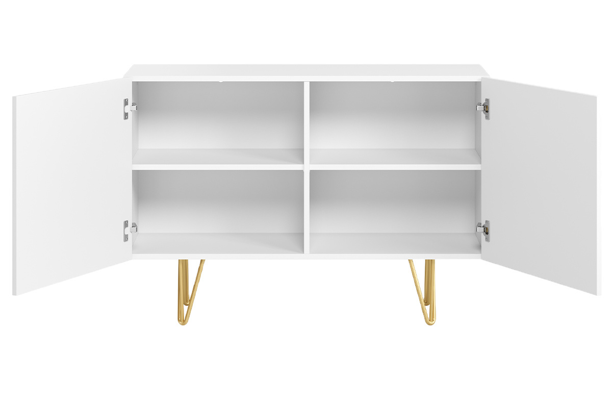 Matière : panneaux de fibres de bois finition blanc mat et métal doré mat