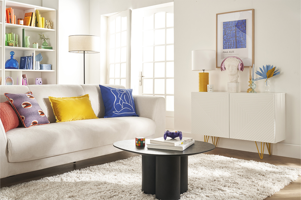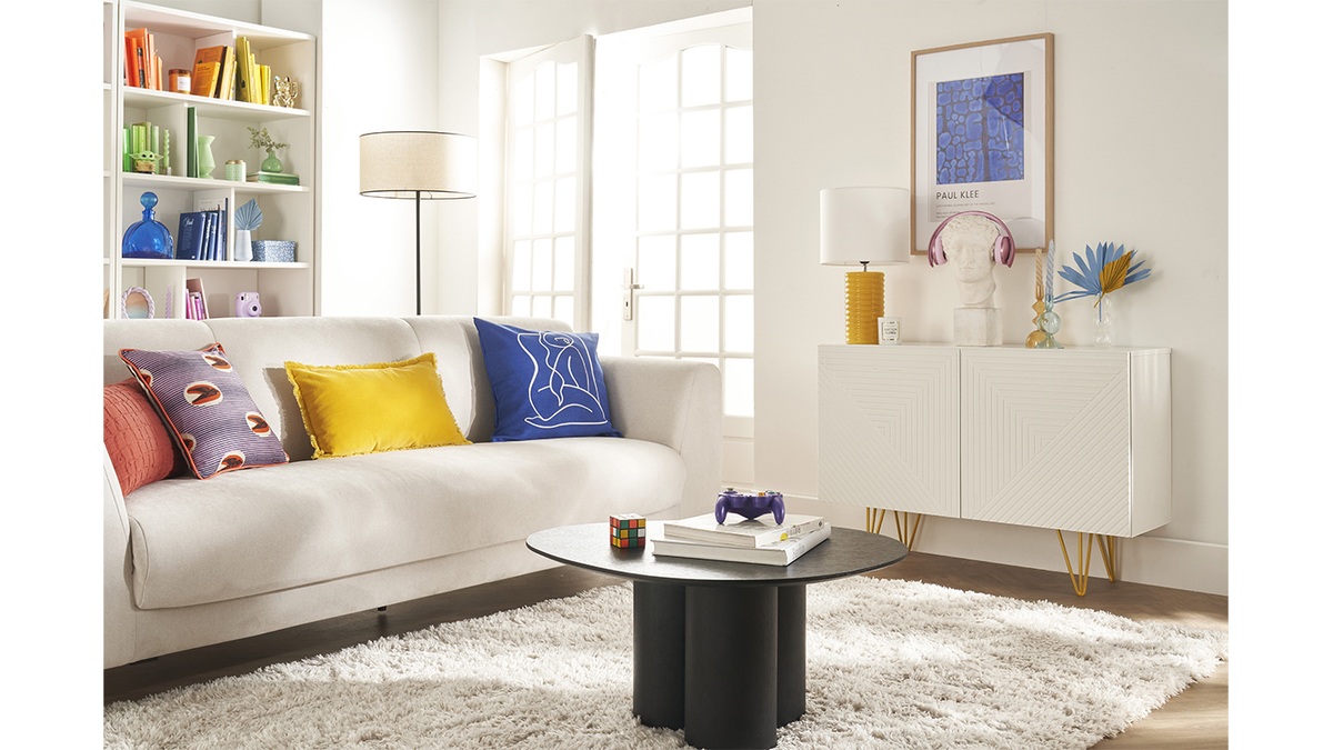 Pour parfaire une déco à votre image, accessoirisez le large plateau d'un cadre, un bouquet et d'une lampe à poser, idéale pour créer un joli jeu de lumière et instaurer une ambiance douce et tamisée.