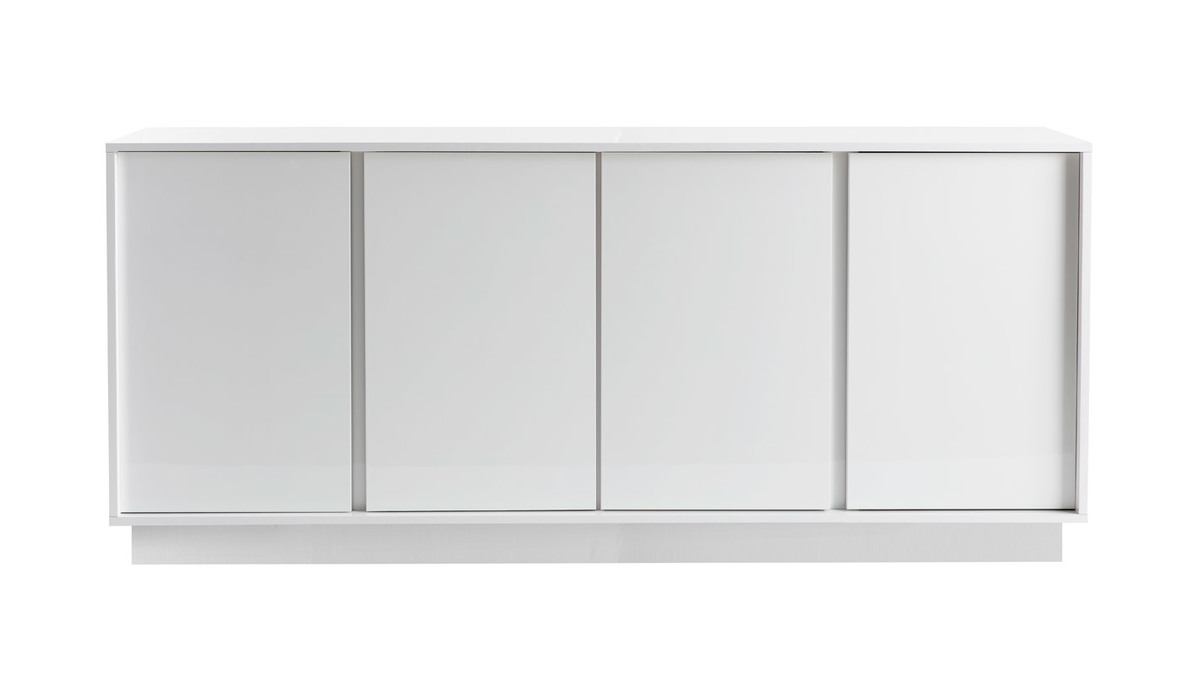 Composé de panneaux de particules de bois aggloméré finition laqué, ce buffet design blanc trouvera parfaitement sa place dans un grand séjour-salle à manger de style contemporain comme dans une chambre. Ce buffet blanc brillant apportera sans nul doute une belle luminosité dans votre pièce de vie.