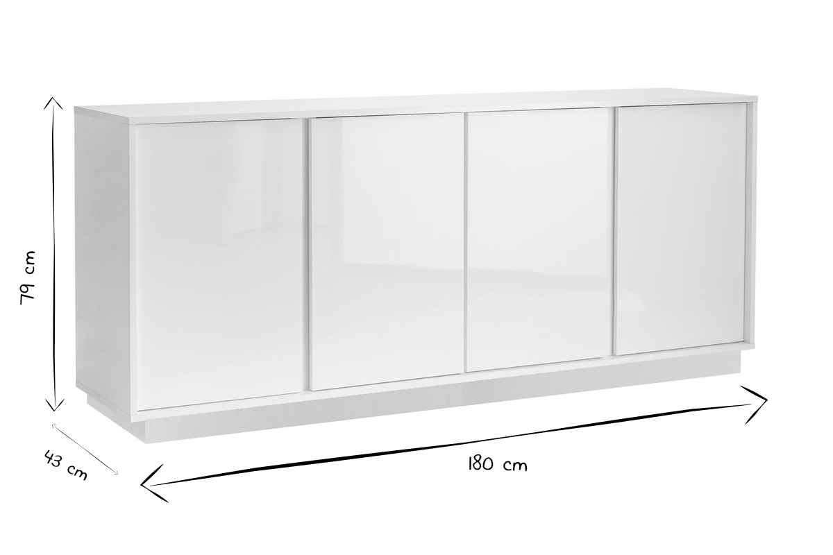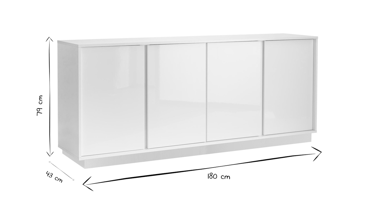 Pratique et esthétique, ce grand buffet blanc aux dimensions L180 x P43 x H79 cm dissimule 8 beaux espaces de rangement (L40 x P34.5 x H32.7 cm) qui vous permettront de ranger facilement la vaisselle ainsi que tous les divers objets du quotidien qui s'accumulent au fil du temps.