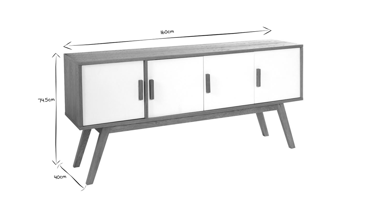 Un design type scandinave doux et harmonieux pour le buffet HELIA, qui offre un bel espace de rangement grâce à ses 4 placards. Il sera parfait dans un intérieur décliné dans des tons clairs et vous permettra de créer une atmosphère chaleureuse et épurée.