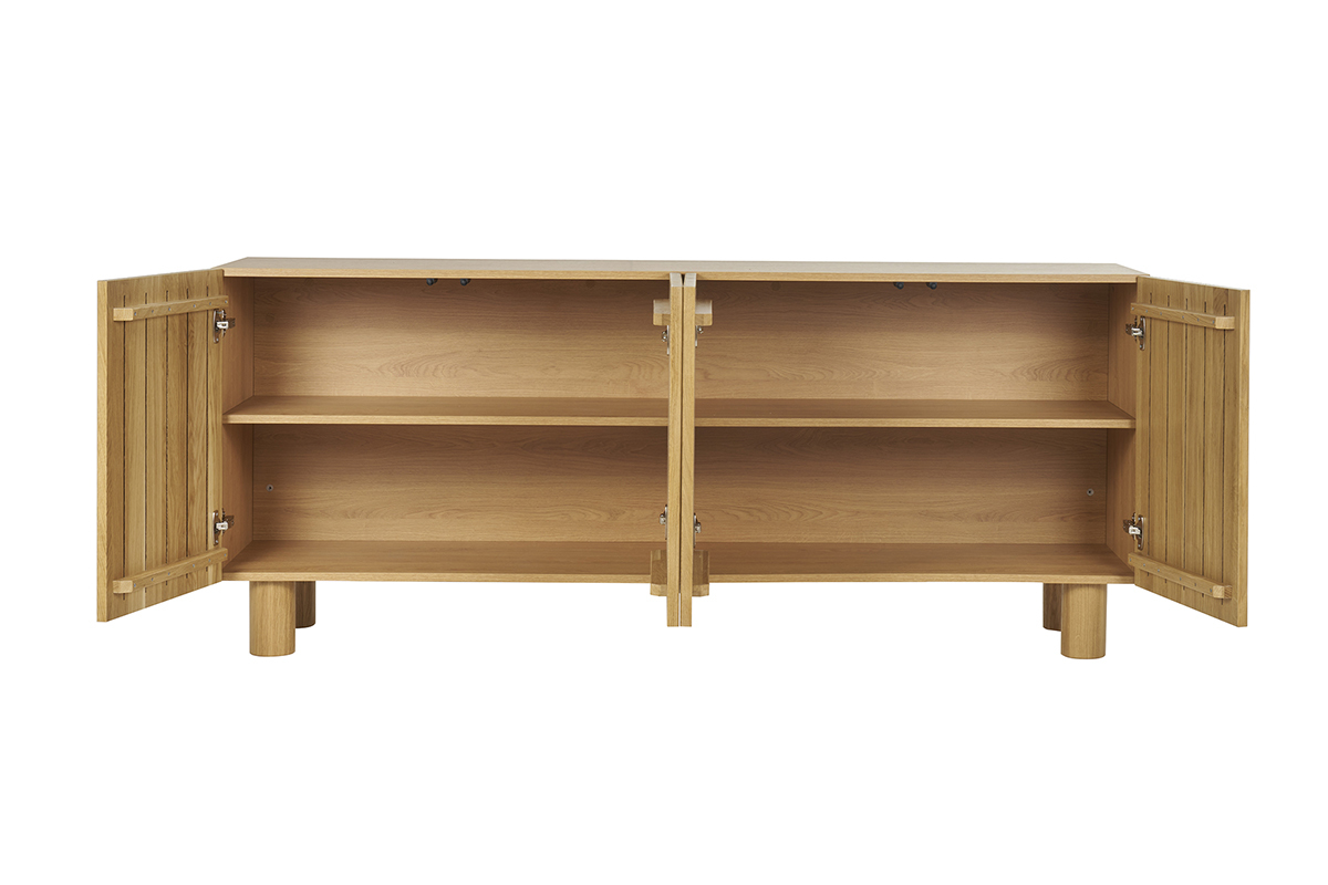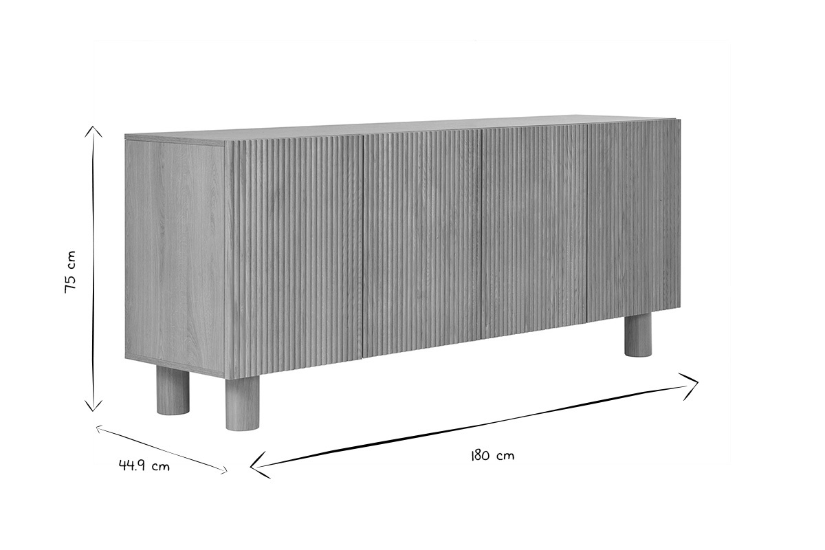 Fabriqué en Europe, le buffet GOSHI est équipé de portes finement rainurées, ajoutant une dimension texturée et moderne à son apparence classique. Ses lignes épurées et sa finition soignée font de ce meuble un élément central dans n'importe quelle pièce, que ce soit dans le salon, la salle à manger ou le bureau. Avec ses dimensions généreuses (L180 x P44.9 cm), il offre un vaste espace de rangement pour organiser et dissimuler vos objets du quotidien, tout en gardant votre espace propre et ordonné.