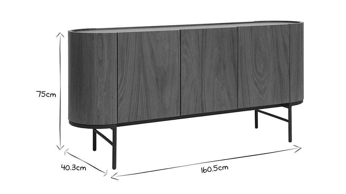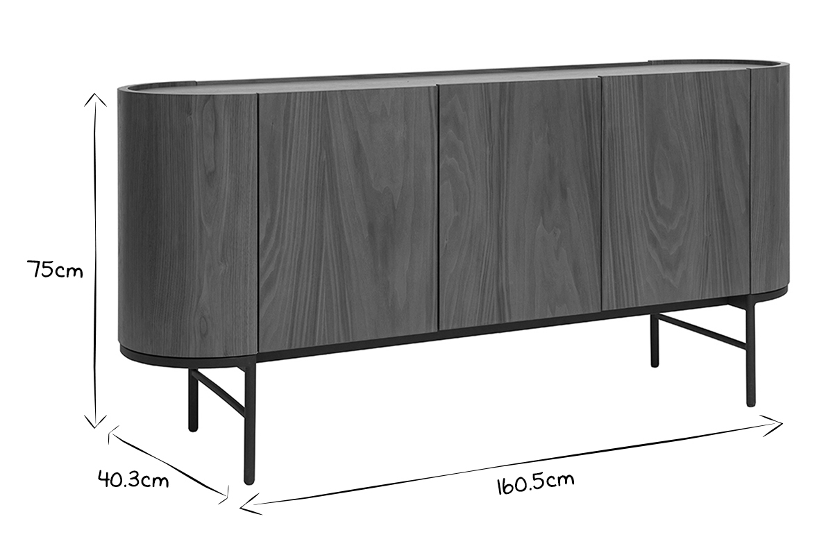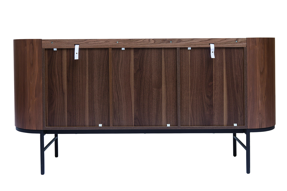 Buffet design bois foncé noyer et métal noir 3 portes L160 cm SKYE livré à assembler.