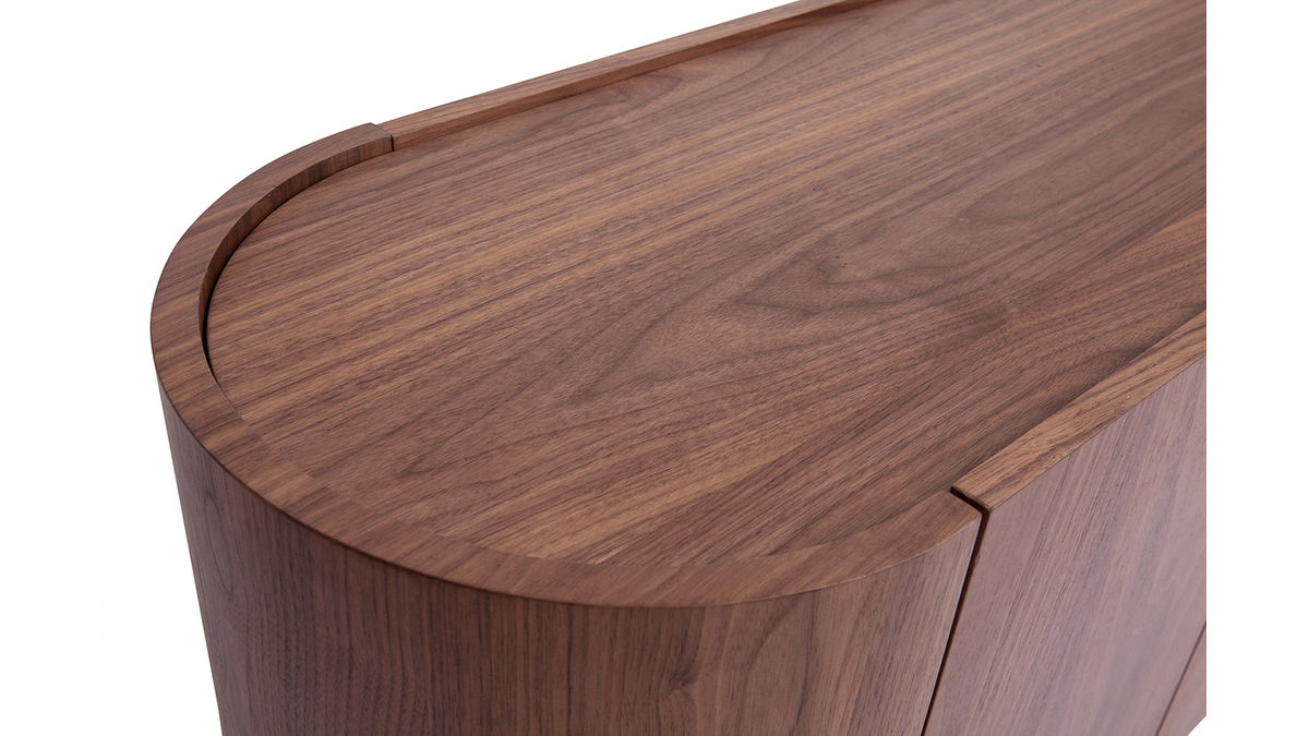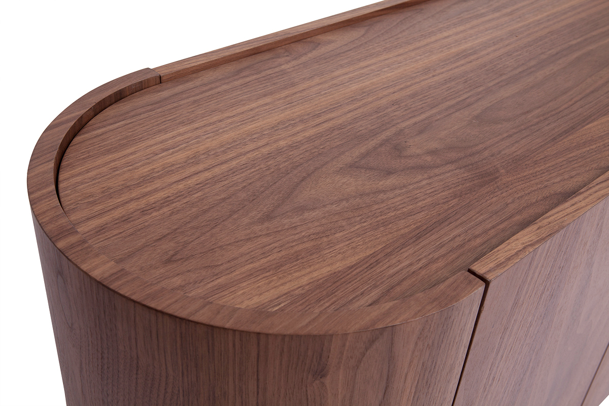 Hautement tendance, on lui doit sa prestance et son charisme à sa forme ovale, à la fois minimaliste et organique. Savant mélange entre inspirations d'antan et celles du présent, ce buffet design sublime sa silhouette purement contemporaine en l'associant à une belle couleur noyer toute droit empruntée aux pièces de mobilier rétro.
