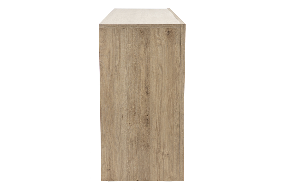 Ce meuble de rangement est une belle pièce de mobilier moderne. Un design épuré, une finition chêne chaleureuse, un piètement massif... il rassemble tout ce qui fait l'élégance du style minimaliste. Le mélange entre une forme résolument contemporaine et une finition bois est idéal pour se créer un intérieur élégant tout en réchauffant la pièce.