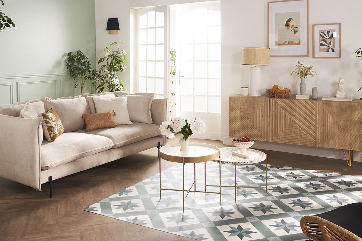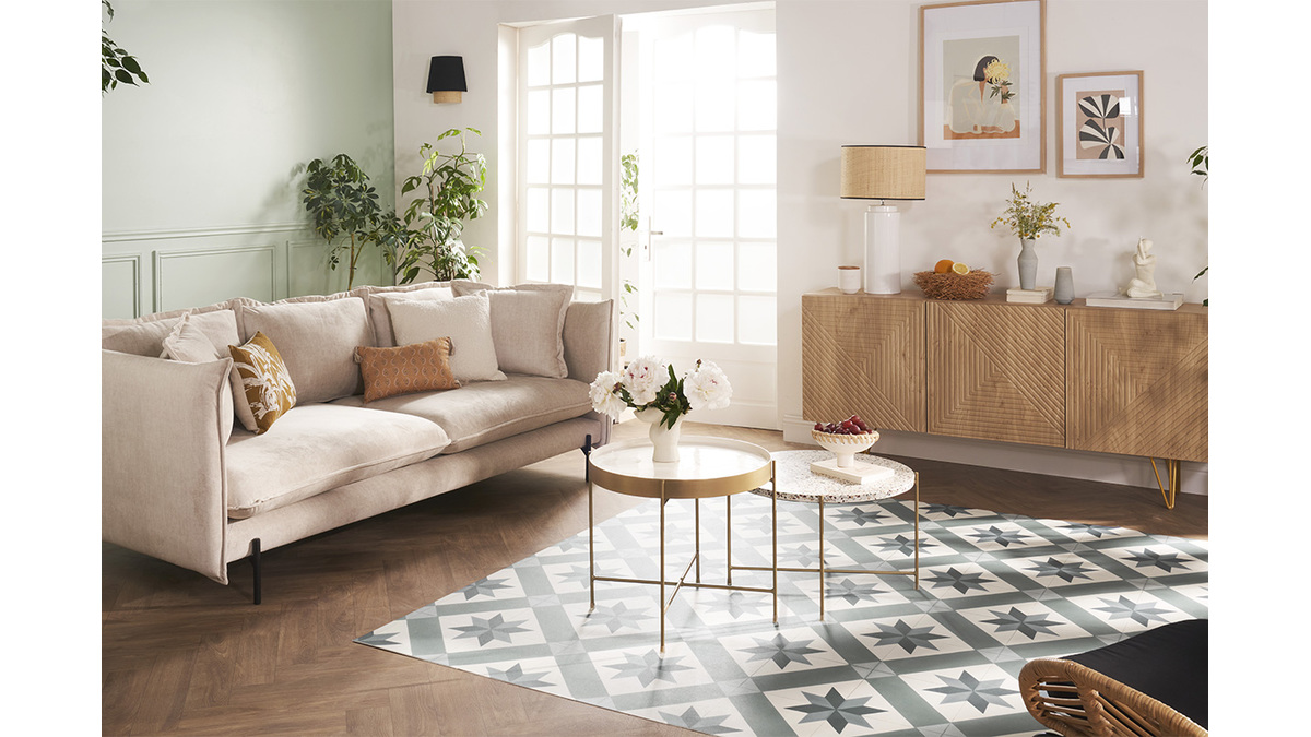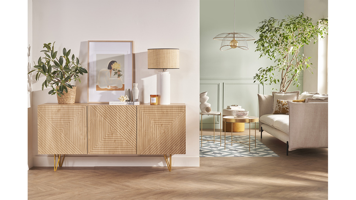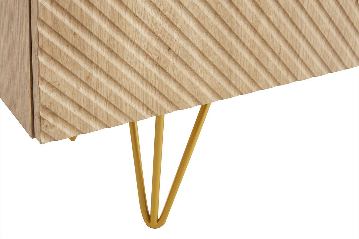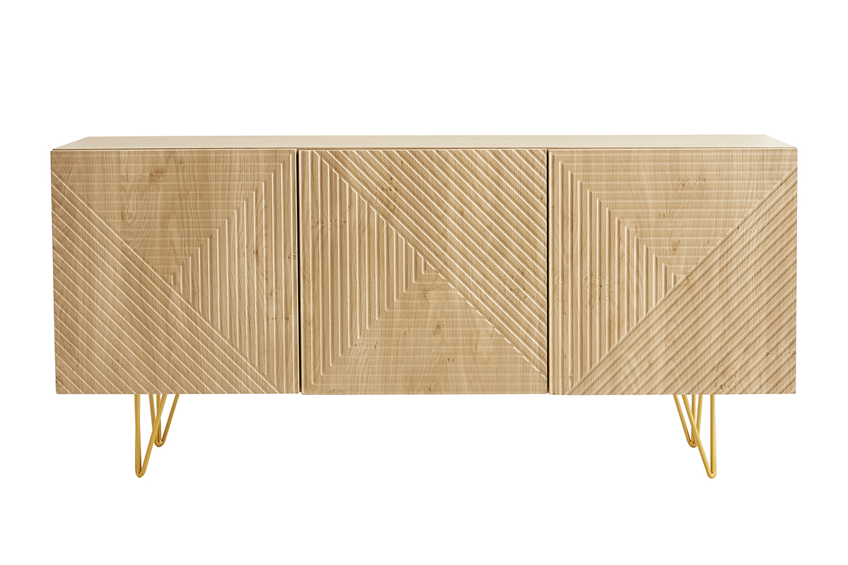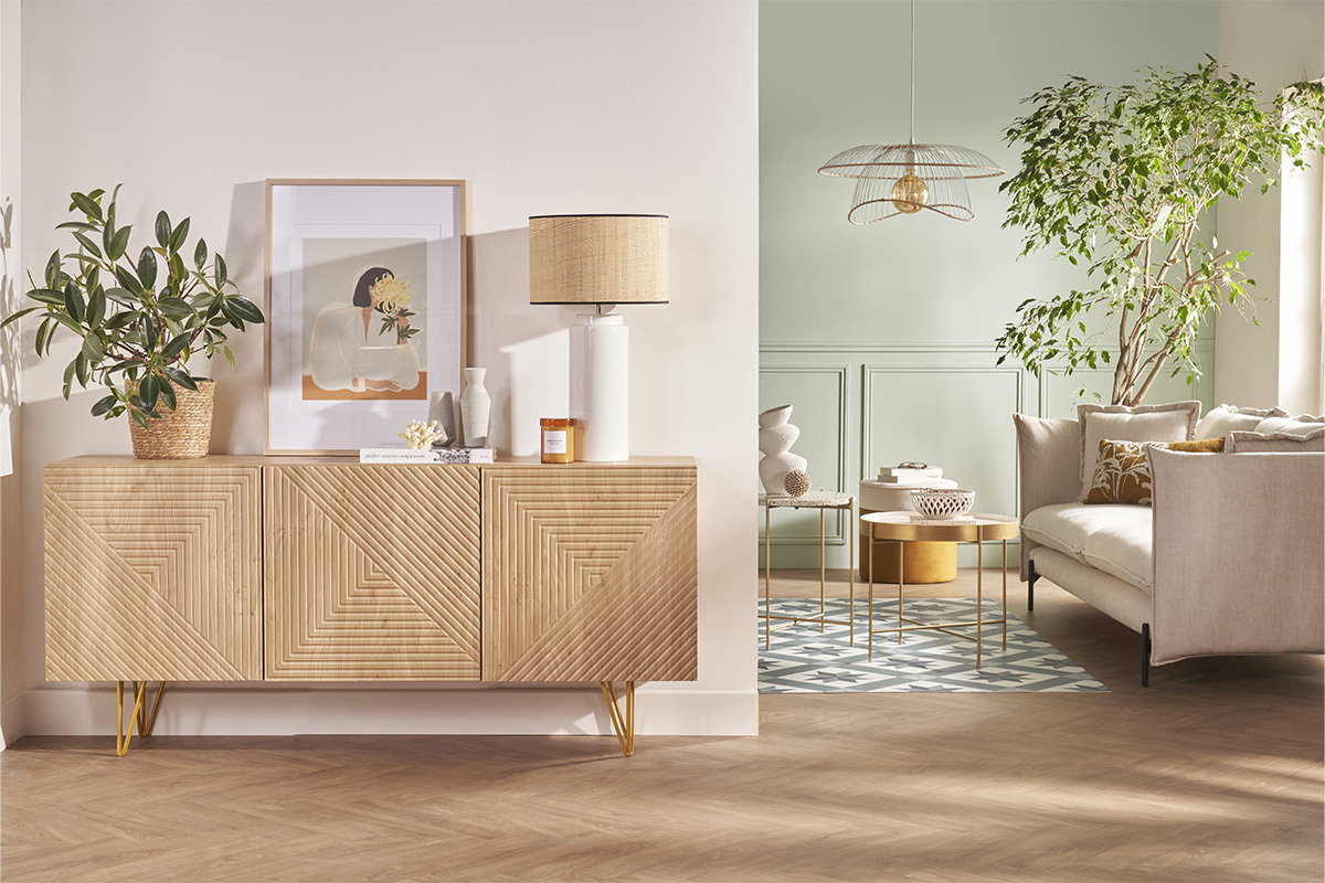 Avec le buffet OZEN, les intérieurs contemporains ont trouvé leur perle rare ! Petit bijou de design, ce buffet moderne se démarque par son originalité. Les trois portes sont ornées d'un magnifique motif géométrique en relief ton sur ton. Atypique mais discret, il fait toute l'élégance de ce meuble de rangement en enfilade. La finition bois clair de la structure est réhaussé par un piètement épingle en métal doré. Ce détail chic et coloré est travaillé avec finesse pour un style tout en légèreté.