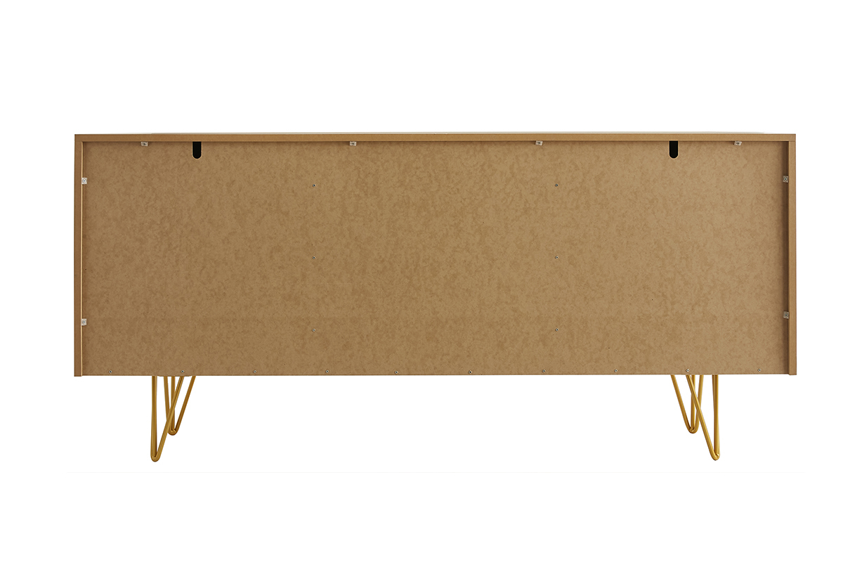 Ce buffet bois clair et métal doré n'est pas qu'un bel objet déco. Il renferme six espaces de rangement (L51 x P33 x H25.5 cm) pensés pour organiser la vaisselle ou les affaires du quotidien. Grâce à ses dimensions L160 x P35 x H73 cm, ce buffet design s'intégrera facilement dans une entrée ou une petite pièce. Une lampe à poser moderne et quelques cadres habilleront à merveille ce meuble design.