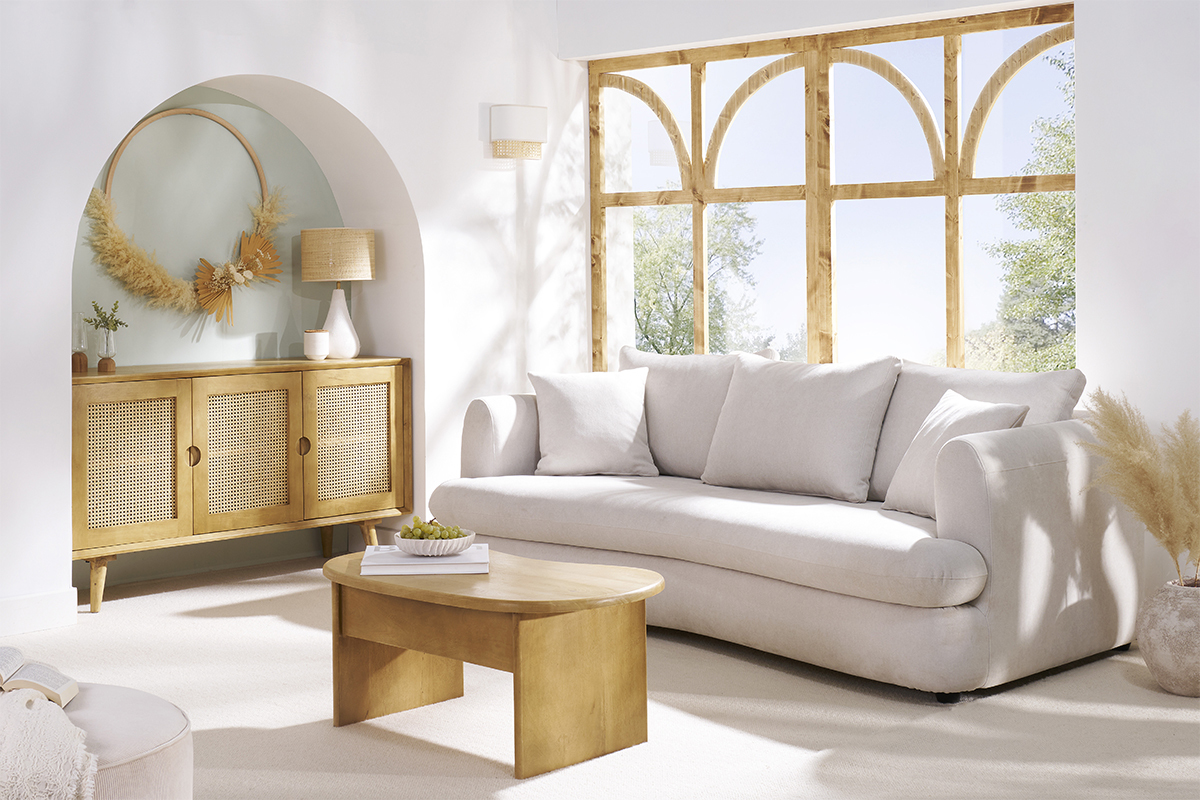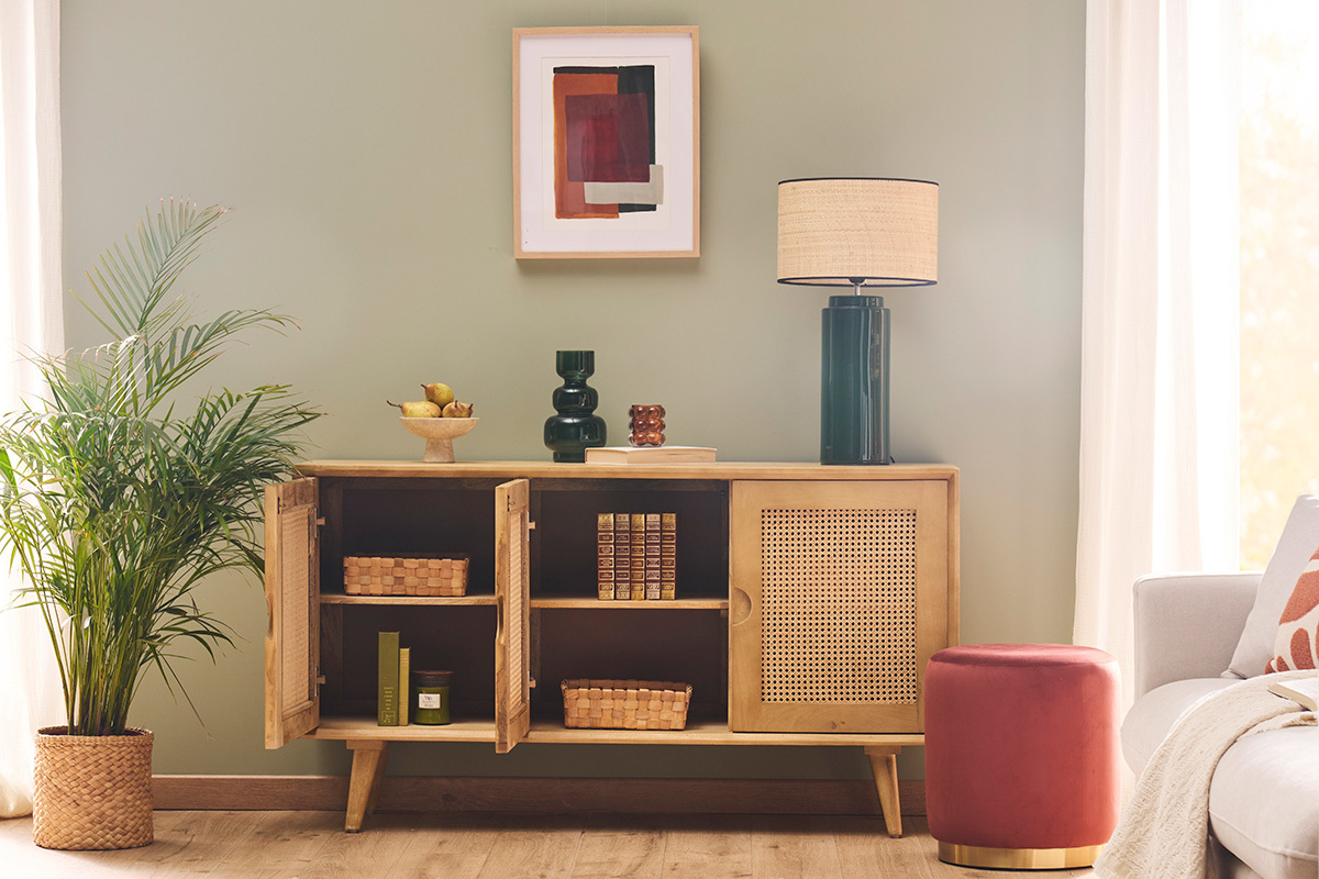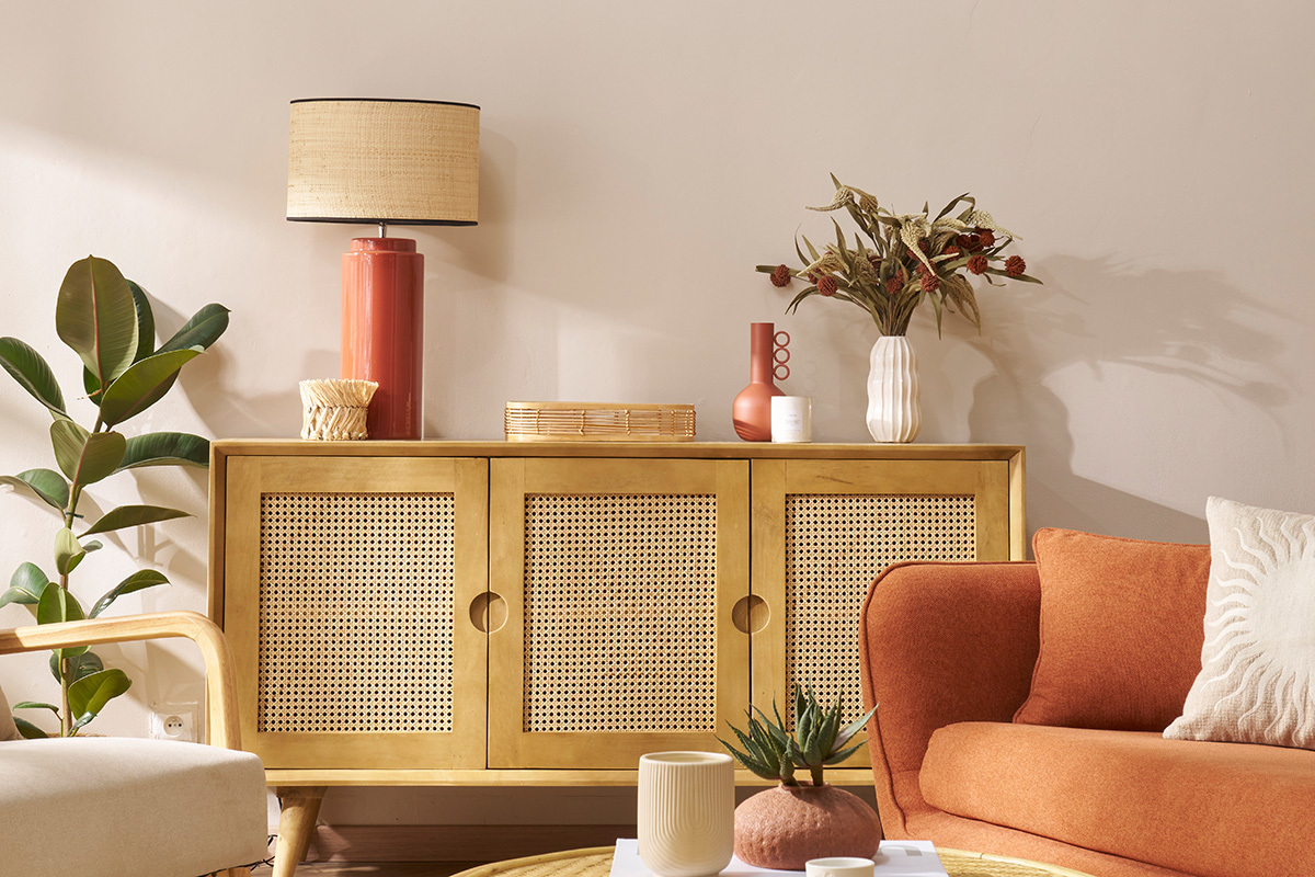 Bohème, ethnique, vintage, scandicraft ou japandi... Cet élégant buffet bas 3 portes en bois massif et cannage rotin (fond du meuble en panneaux de fibres de bois) assurera une belle dose de naturel dans de nombreux styles d'intérieur, même les plus modernes ! Dans un salon, une grande entrée ou un bureau, adossé à un mur uni ou une tapisserie à motifs, LAKA habillera à lui seul la pièce de vie.