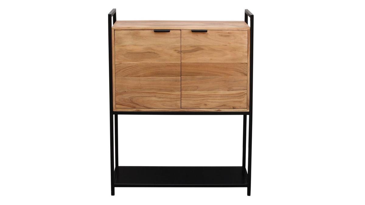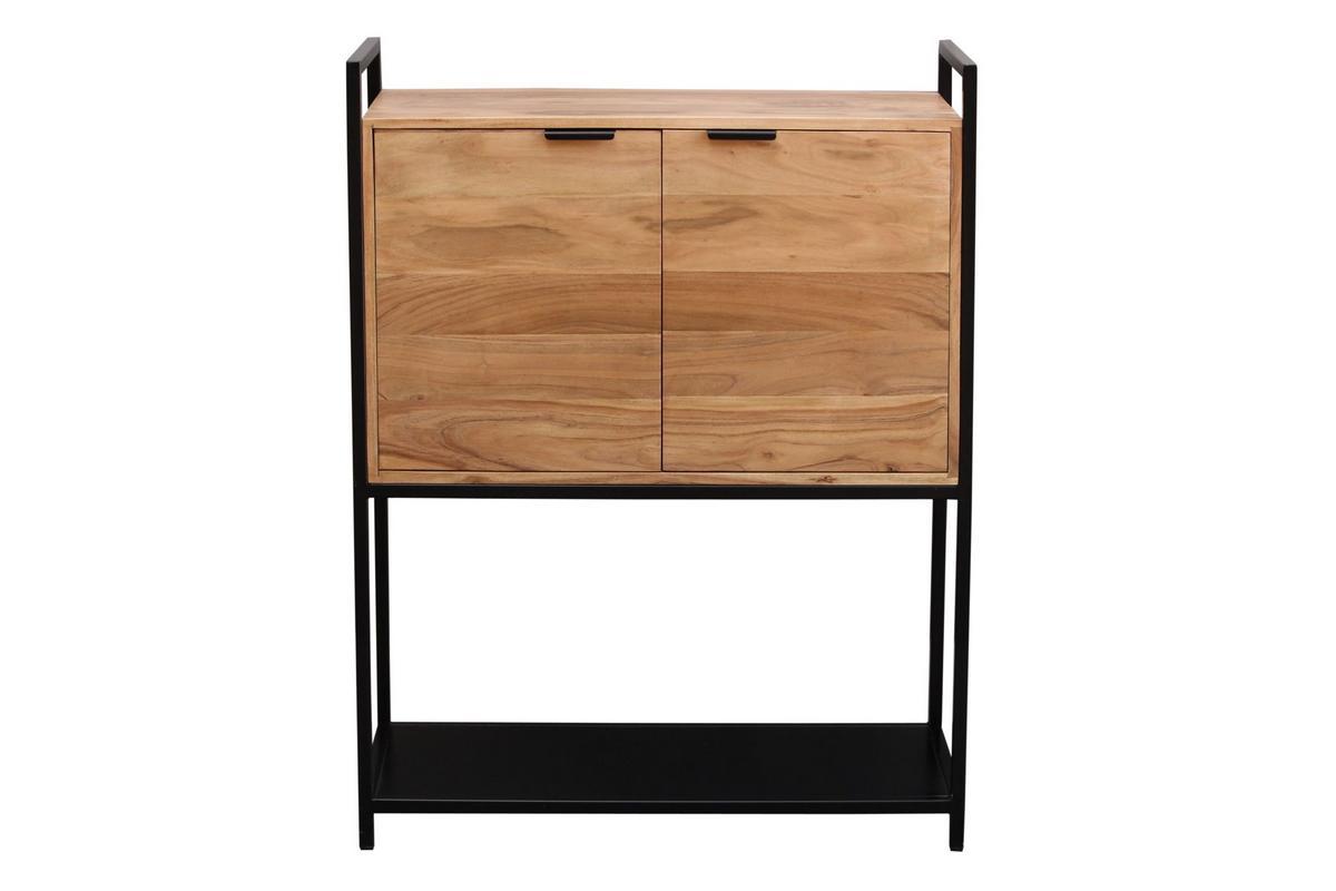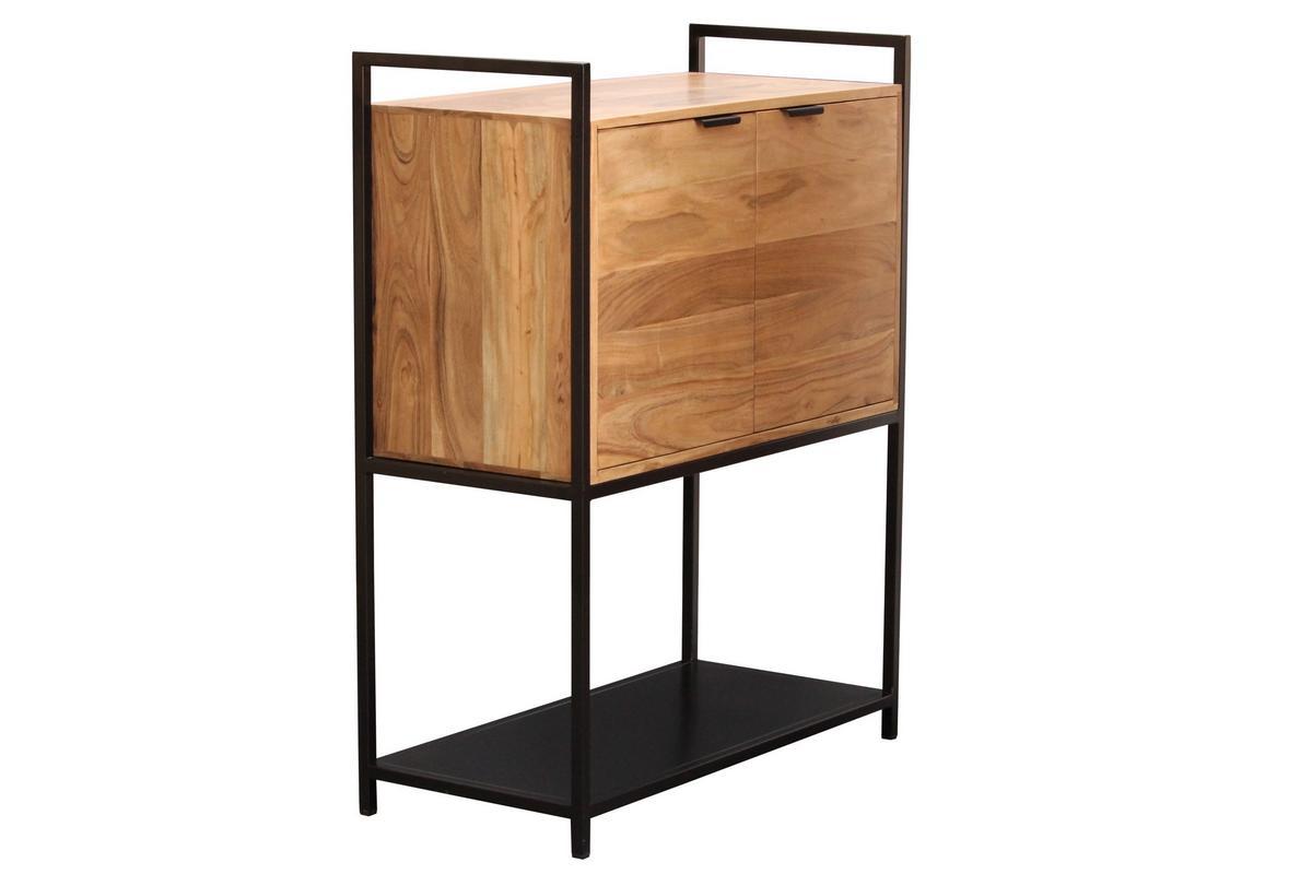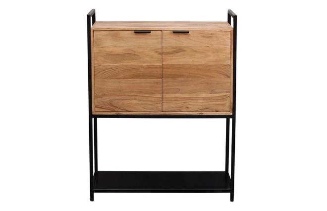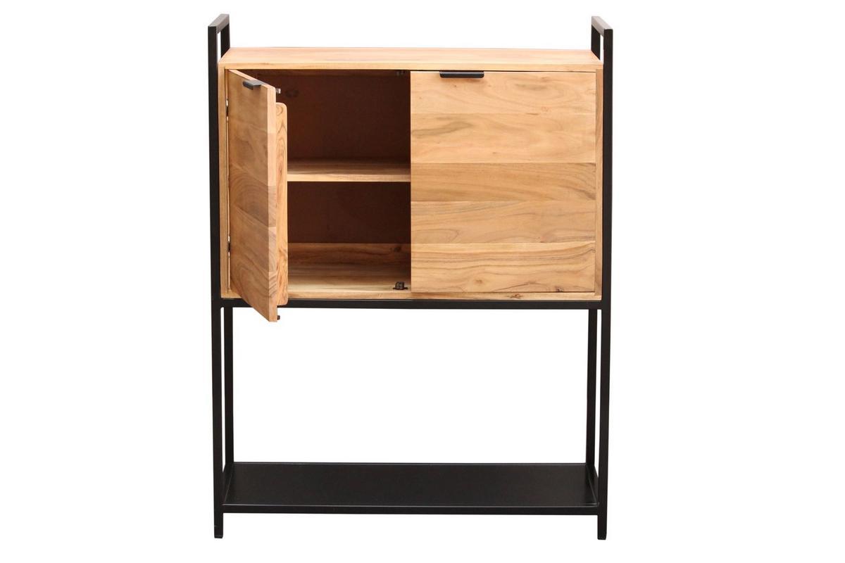 Buffet haut en bois massif et métal noir 2 portes L85 cm ARTHUS livré prêt à monter.