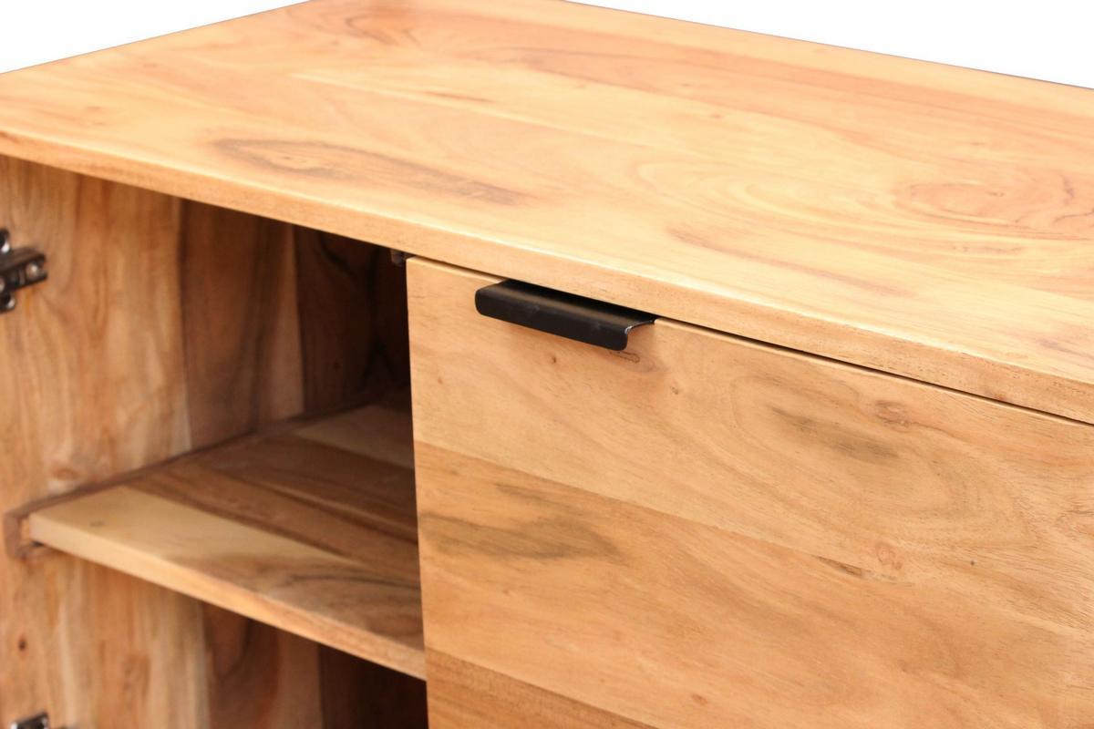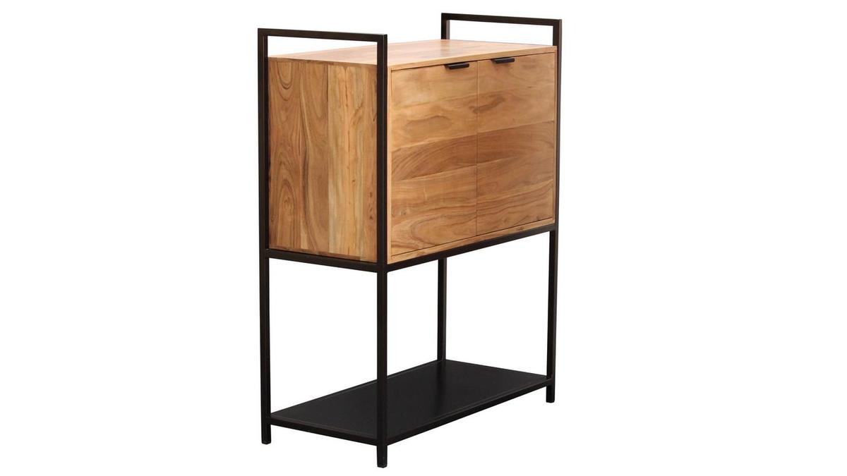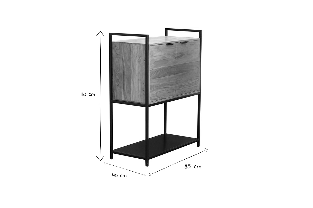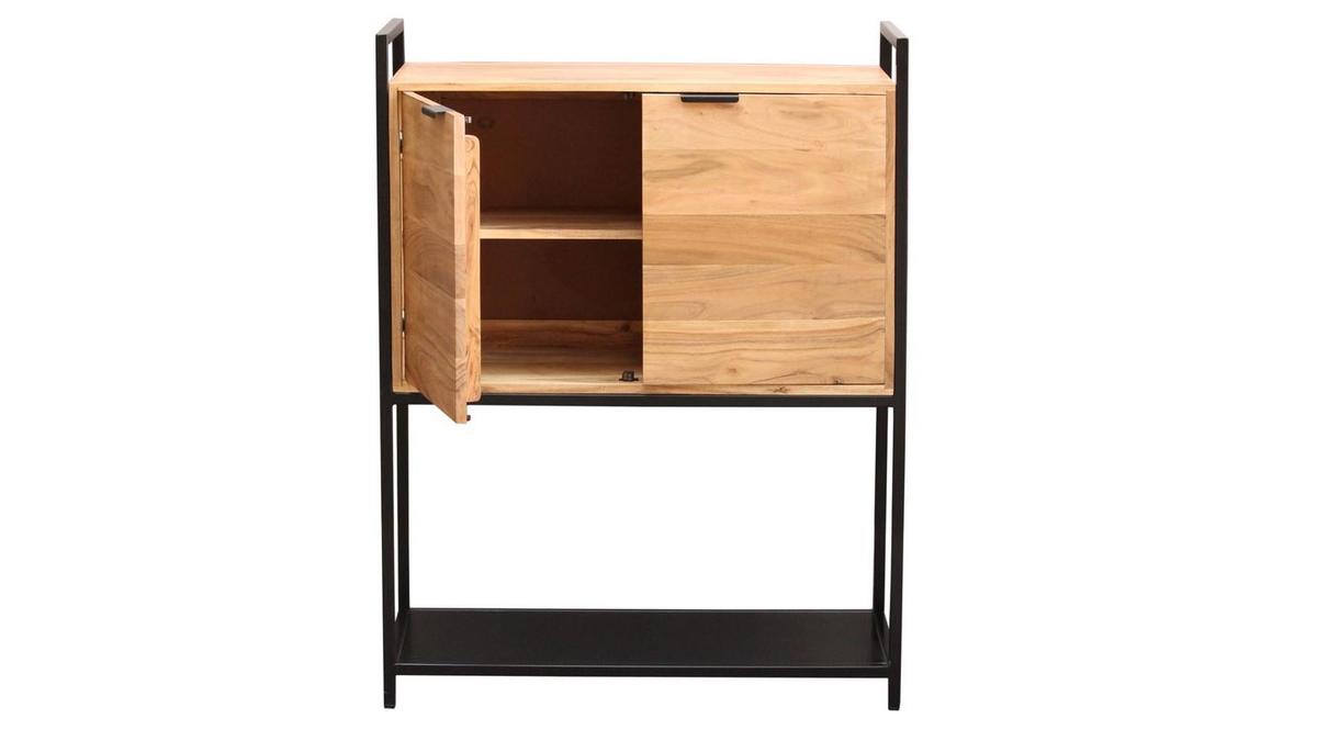 Buffet haut en bois massif et métal noir 2 portes L85 cm ARTHUS livré prêt à monter.