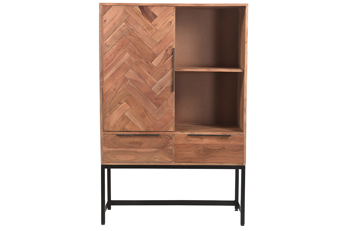 Ce buffet avec rangements fermés concentre l'essentiel pour un maisonnée organisée. Il est équipé de deux niches ouvertes pour mettre en valeur vaisselle et objets décoratifs, de un espace de rangement fermé ainsi que de deux tiroirs.