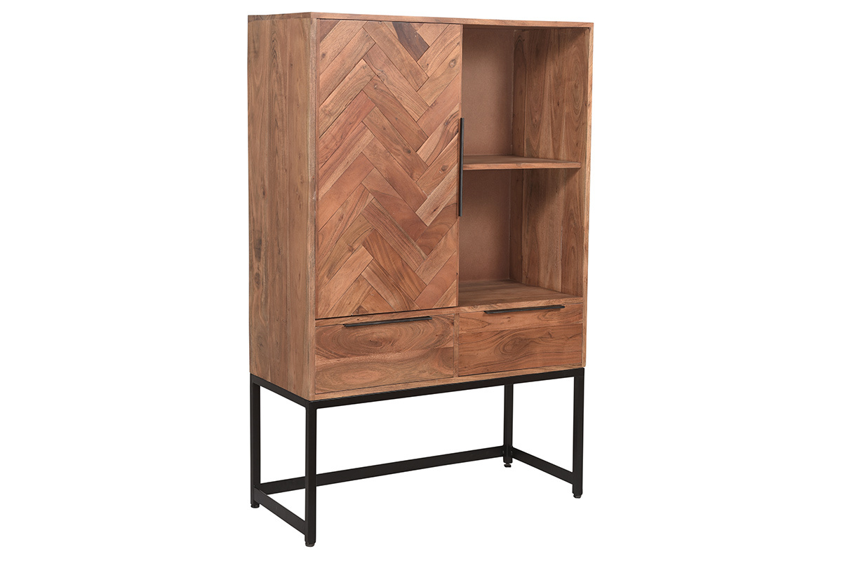 Conçu selon des techniques artisanales, ce meuble offre un rendu naturellement brut. Le motif dessiné sur les portes apporte une touche moderne et originale à l'ensemble. Le piètement métallique a été travaillé tout en finesse pour un rendu léger et aérien.