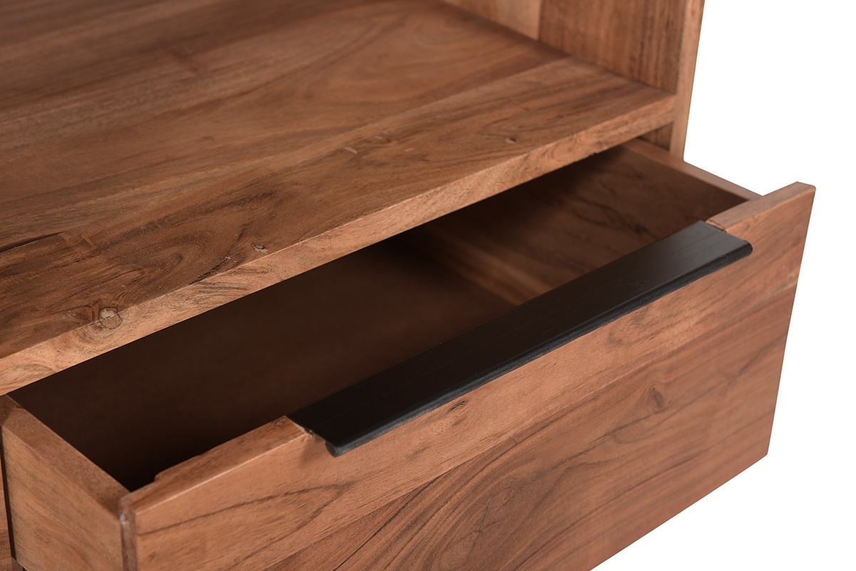 Un buffet en bois massif et métal noir au style unique ! L'acacia, bois exotique aux tons légèrement rouges, est idéal pour réchauffer un intérieur. Dans une salle à manger ou un séjour, cette essence de bois donnera une touche d'exotisme tout en créant une atmosphère chaleureuse. Ses matériaux en font un meuble de rangement solide qui ne manquera pas de charmer de nombreux intérieurs déco.
