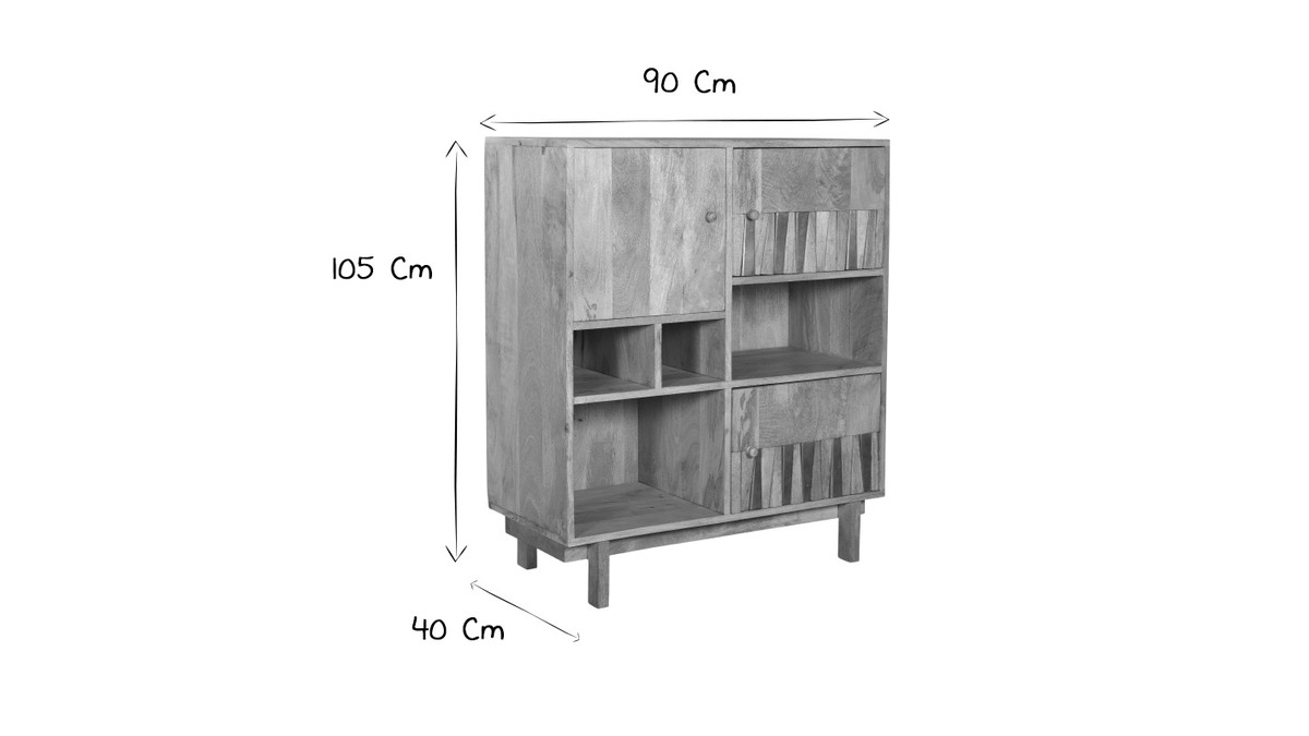 Véritable meuble ornemental, il n'en est pas moins pratique puisqu'il dispose de 7 espaces de rangement : 3 niches fermées et 4 niches ouvertes de différentes tailles. C'est idéal pour se créer un coin déco et l'agrémenter de vases et autres plantes, tout en abritant les objets du quotidien, dossiers, CD, etc... Ses dimensions généreuses vous permettent d'optimiser le rangement de vos affaires, sans négliger la déco !