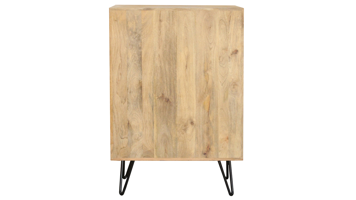 La collection VIBES affirme son côté industriel en mettant en avant le manguier, associé à des pieds en épingle noirs. Bois massif oui, mais son visuel est loin de l'être grâce à la légèreté qu'apporte la finesse de ses pieds. J'ai imaginé ces meubles avec des proportions adaptées aux petits espaces, tout en restant très fonctionnels.