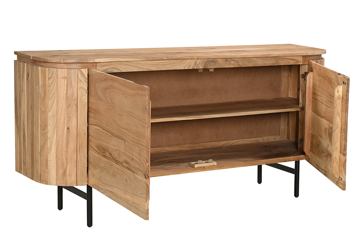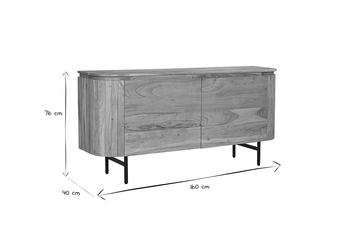 Esthétique et pratique - grâce à ses dimensions L160 x P40 x H76 cm - ce buffet 2 portes en bois et métal, s'envisage autant dans une grande entrée, qu'un bureau ou un séjour. Linge de maison, vaisselle, documents, jeux de société... Bien rangés dans l'une des 2 larges niches fermées par portes battantes, gardez vos essentiels du quotidien à portée de main !