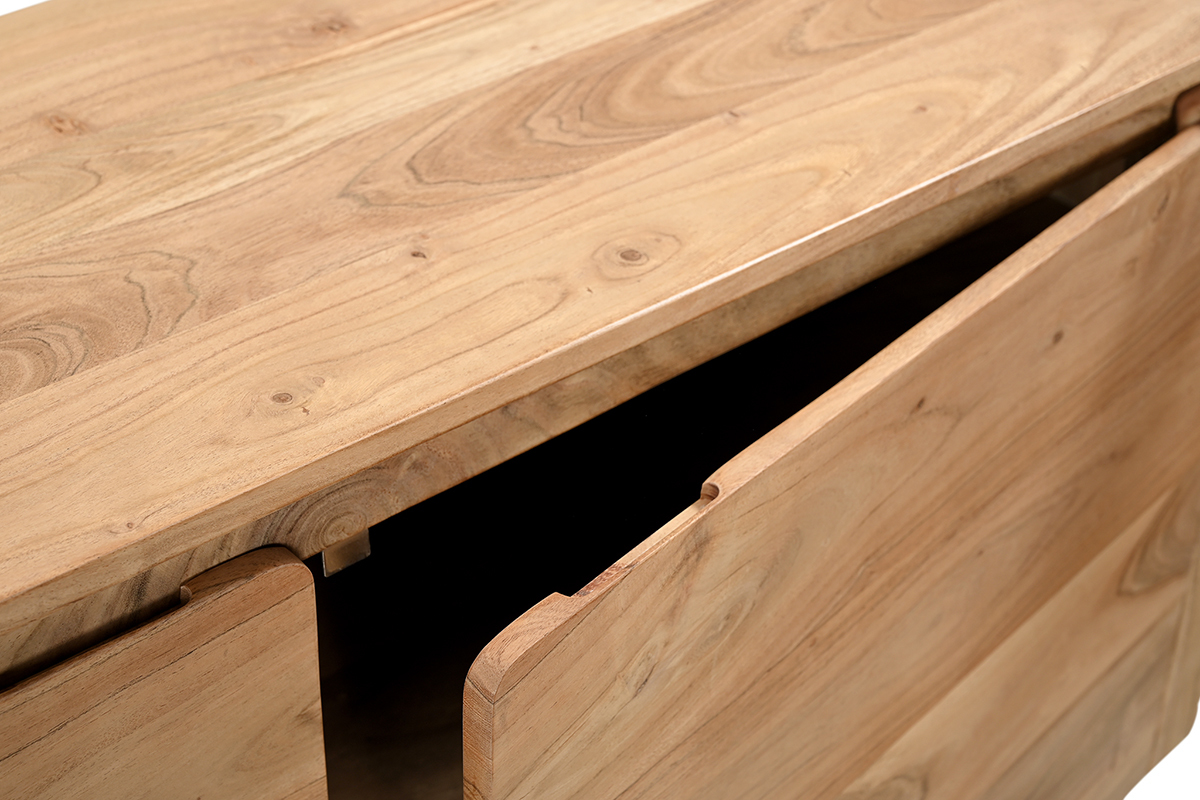 Avec sa personnalité bien marquée, ce buffet en bois et métal évoque sans surprise le style industriel et se démarque par sa conception artisanale. Fabriqué à la main, chaque modèle NAPOLI est unique et ne ressemble à aucun autre. Issu d'un véritable savoir-faire, sculpté par des mains habiles, ce meuble de rangement en acacia massif se distingue par ses aspérités et ses nuances sans pareilles.