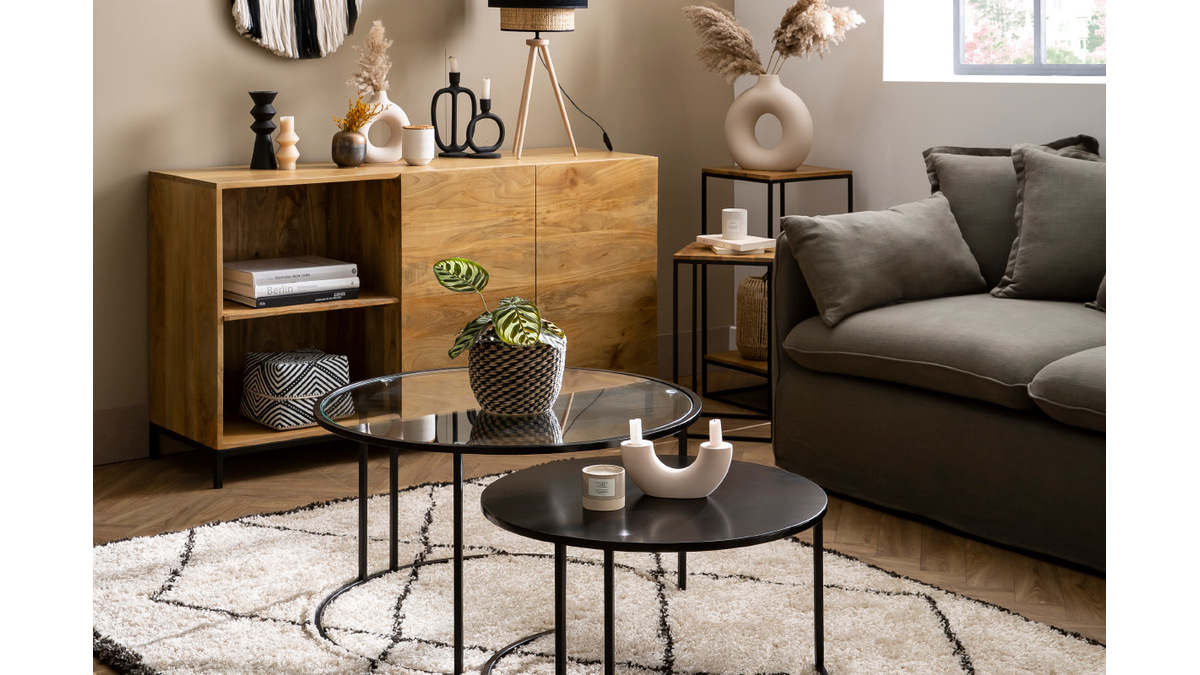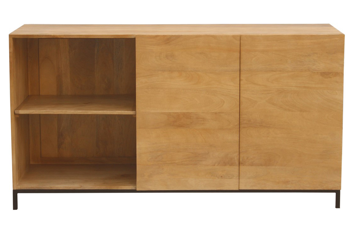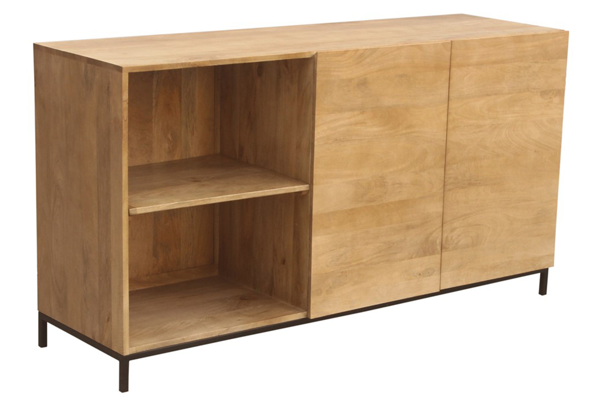 Fonctionnel, ce grand buffet se compose de 2 niches ouvertes et de 2 grandes niches fermées par des porte battantes. Vos objets seront ainsi protégés de la poussière extérieur. YPSTER, une collection atypique qui conserve l'authenticité du bois et le caractère du métal. Le mariage de ces deux matériaux offre un rendu final magnifique.