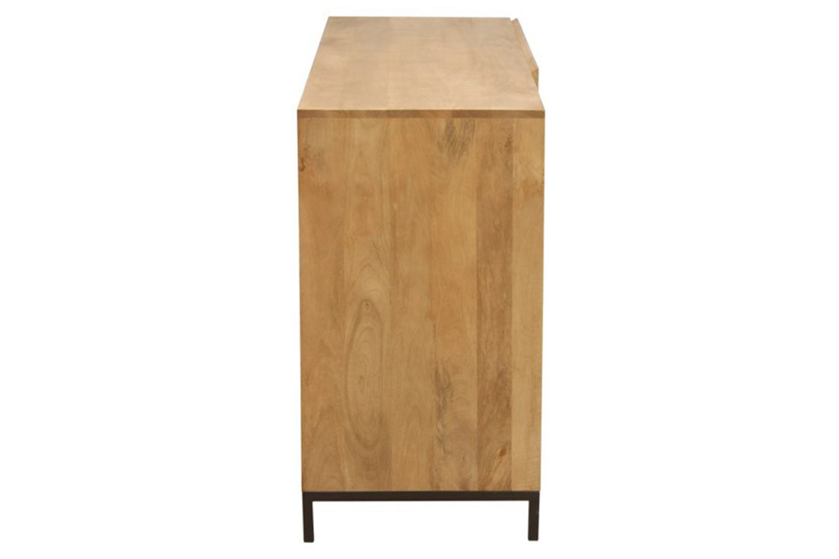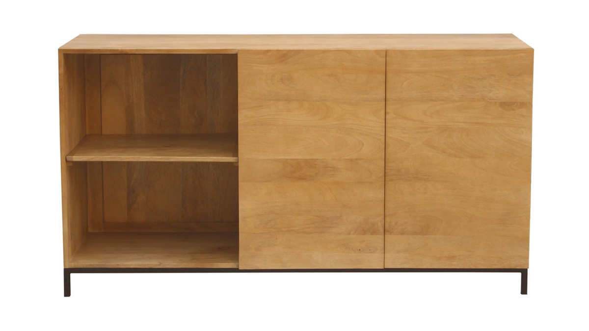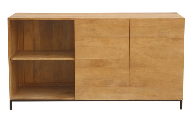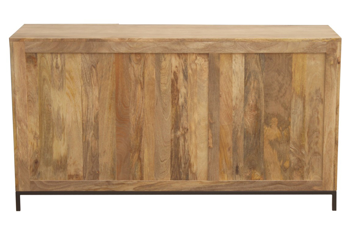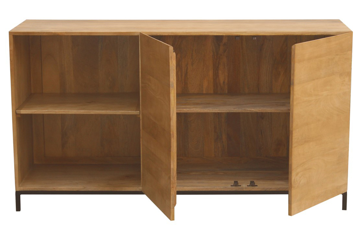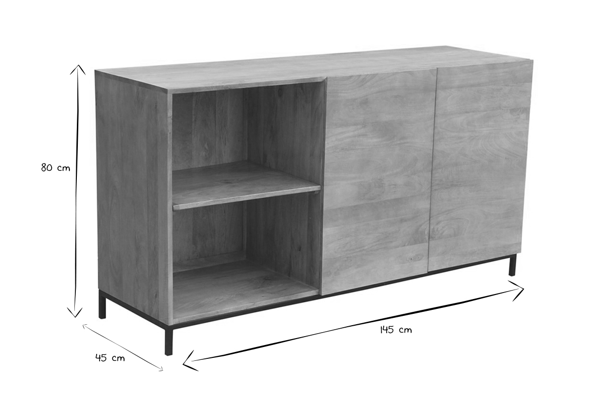 Conçu en manguier vernis, ce grand buffet 3 portes possède une grande résistance. Il vous accompagne sur le long terme. Avec ses pieds en métal noir, ce buffet industriel dispose d'une puissance et peut accueillir de la vaisselle, de la verrerie, des livres ... Ses dimensions L145 x P45 x H80 cm vous offrent la possibilité de déposer de nombreux objets déco. Vous pouvez ainsi le sublimer en accessoirisant avec des vases, des fleurs, des cadres...