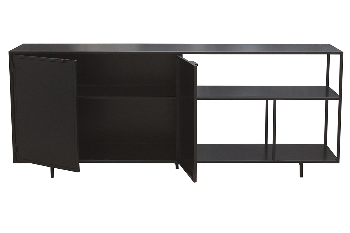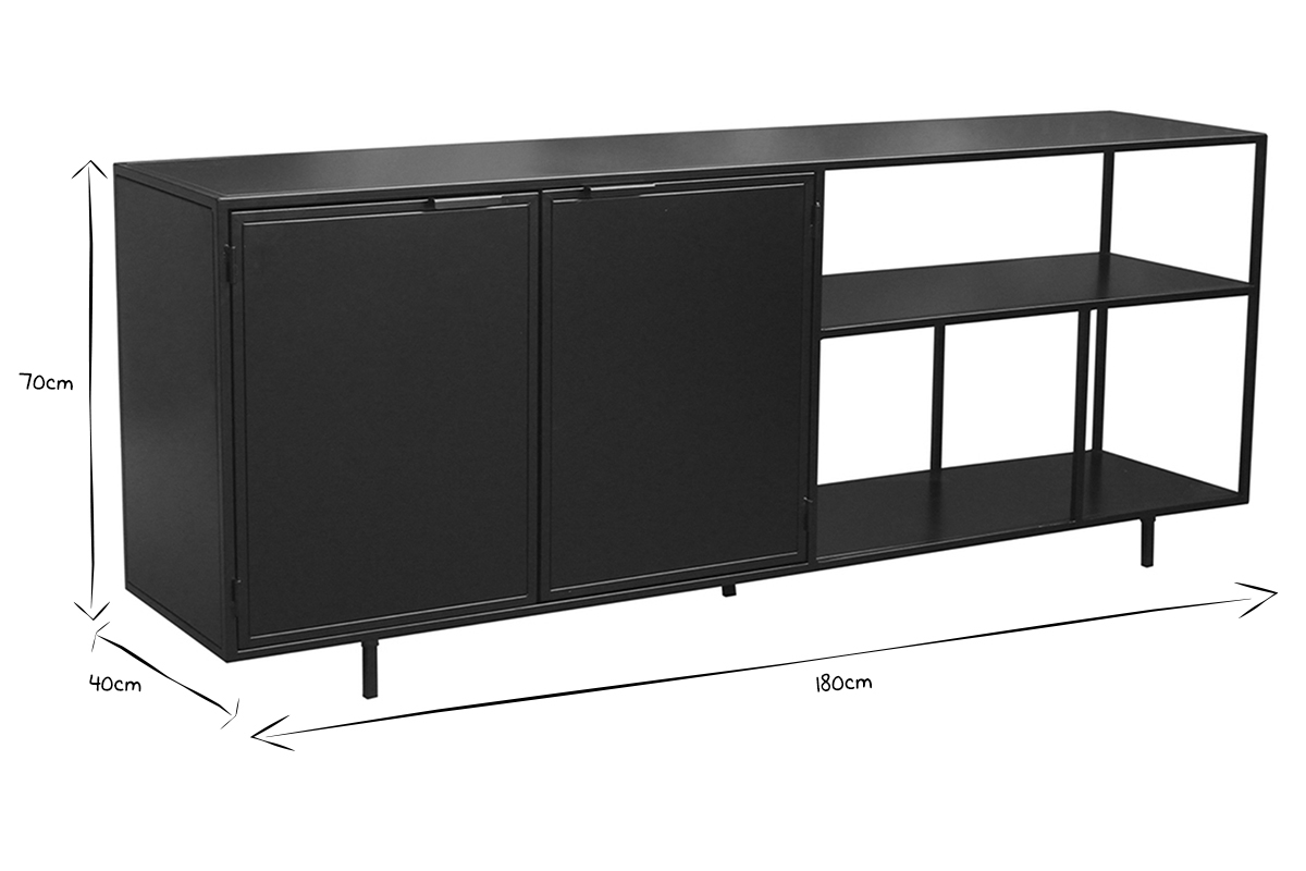 Alliance parfaite entre praticité et style, ce buffet métallique aux belles dimensions L180 x P40 x H70 cm vous permettra d'organiser sans tout cacher. Deux grands volumes de rangement fermés par portes battantes et deux spacieuses niches ouvertes accueilleront volontiers du linge de maison, de la vaisselle, des documents... Surélevé par un discret piètement, l'ensemble se veut très résistant.