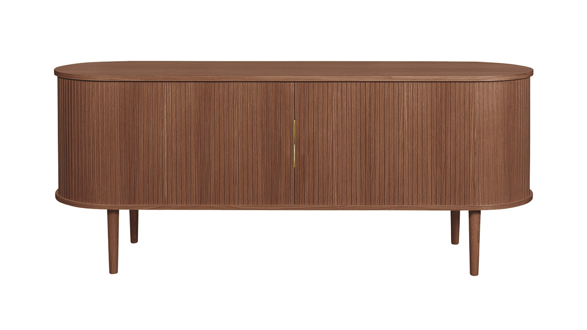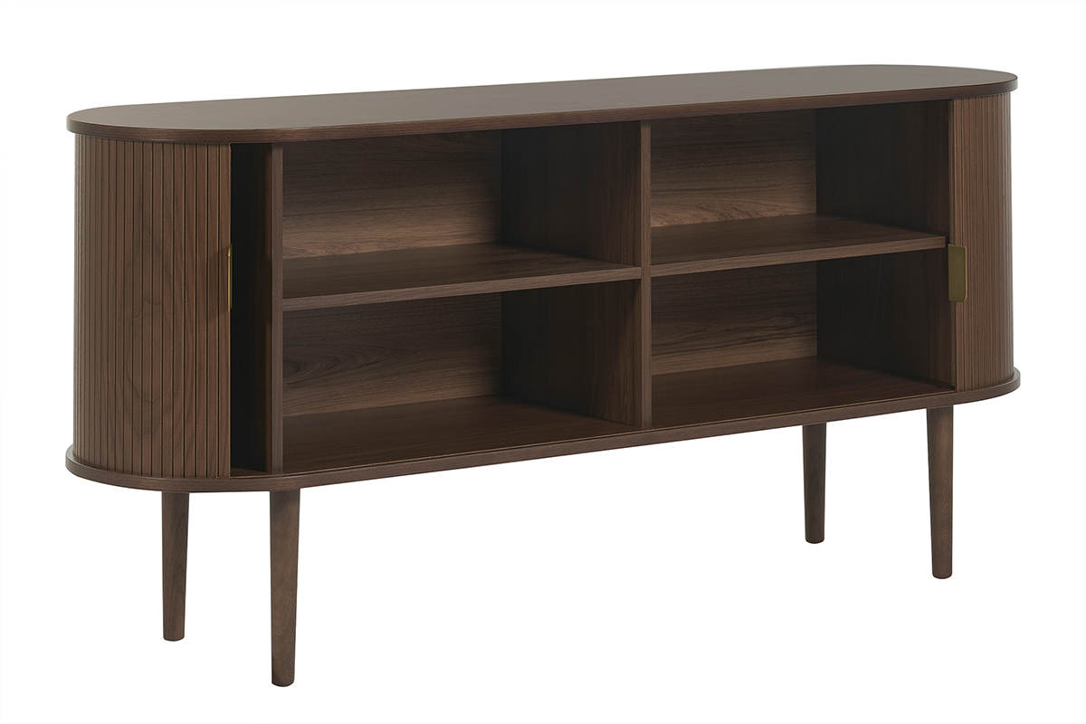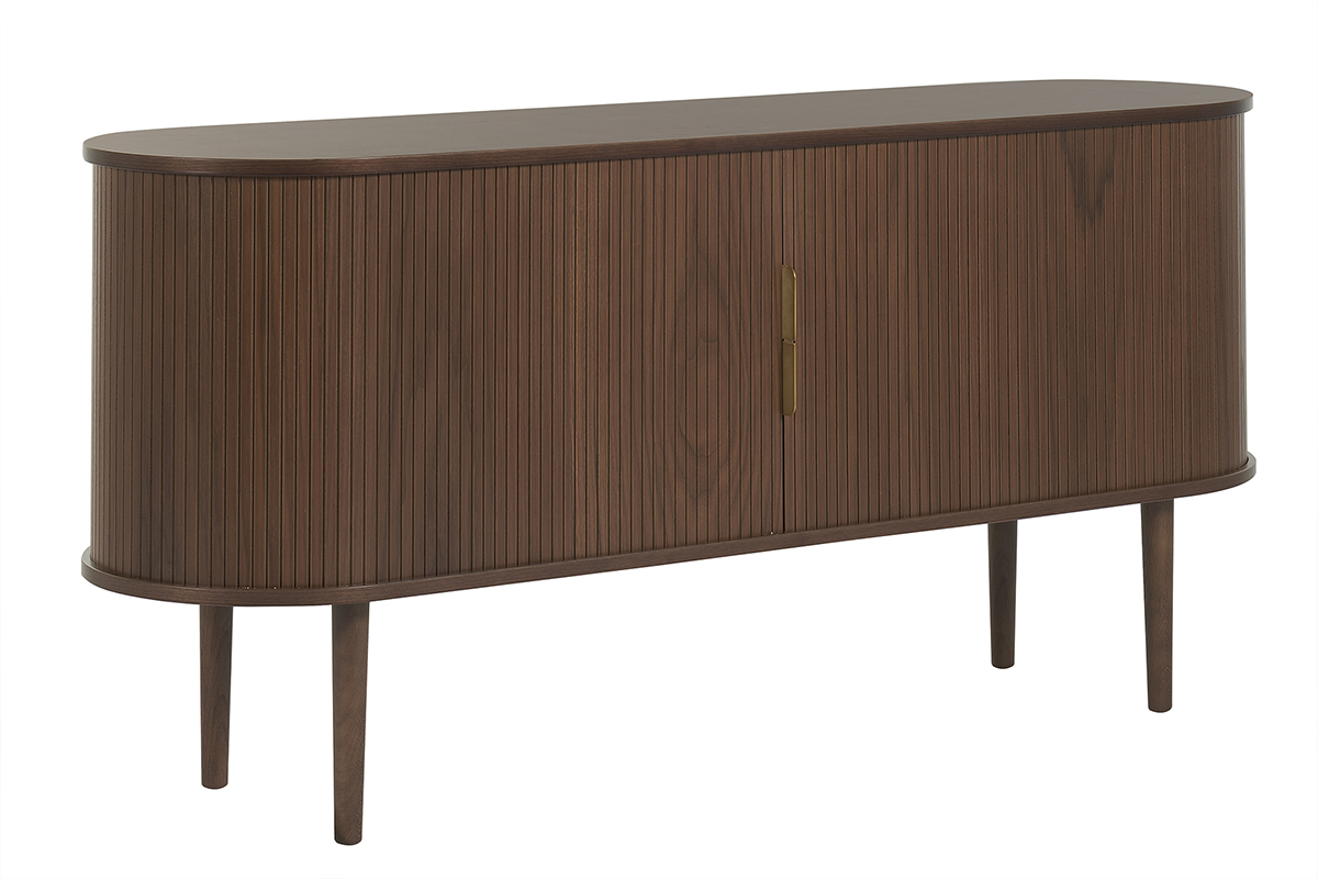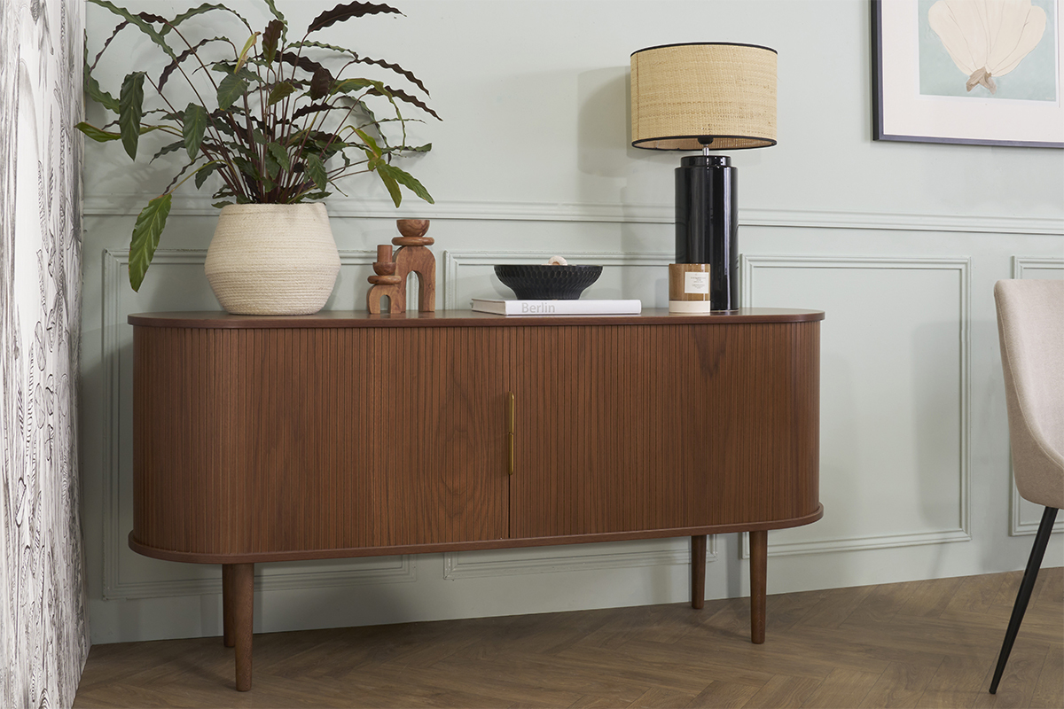 Ce qui le distingue ? Sa silhouette aux angles arrondis tout droit inspirée des années 70 ! Pour un look 100% vintage, il l'associe à deux belles portes coulissantes et des pieds fuselés. En plus d'apporter du cachet à votre intérieur, ce buffet en bois foncé saura insuffler une note chaleureuse dans votre intérieur.