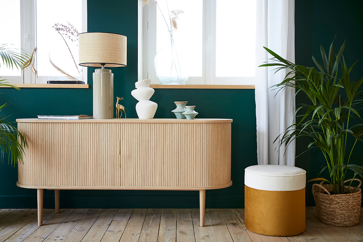 Vous pourrez profiter du long plateau pour y disposer des accessoires déco, des cadres, un miroir ou encore une lampe à poser pour apporter un halo de lumière supplémentaire dans votre pièce de vie.