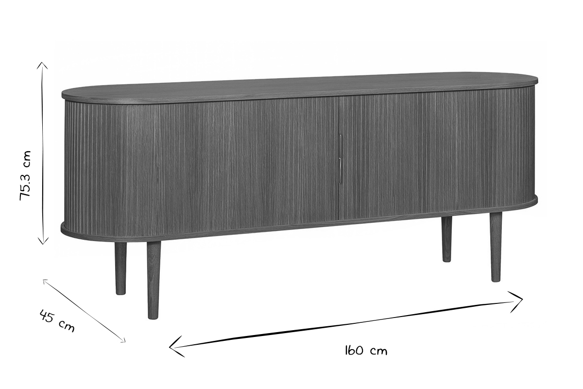 Meuble en bois déco, ce buffet design prendra ses marques avec aisance dans des ambiances scandinave, rétro, ou encore bohème avec style ! Grâce à ses dimensions L160 x P45 x H75 cm, ce buffet bas s'envisage dans toute la maison : chambre à coucher, salon, cuisine ou bureau !