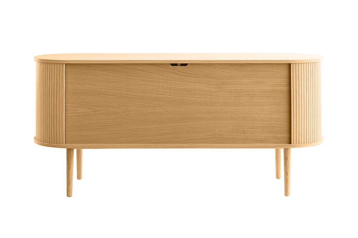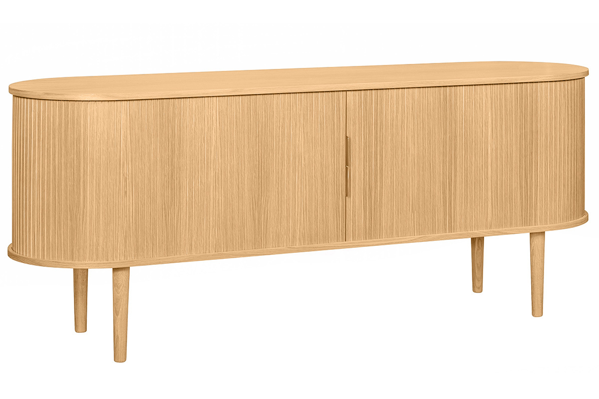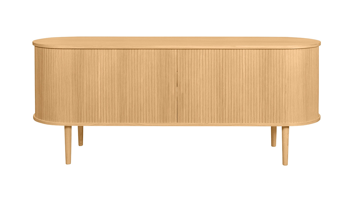 Ce qui le distingue ? Sa silhouette aux angles arrondis tout droit inspirée des années 70 ! Pour un look 100% vintage, il l'associe à deux belles portes coulissantes et des pieds fuselés. En plus d'apporter du cachet à votre intérieur, ce buffet en bois clair saura insuffler une note chaleureuse dans votre intérieur.