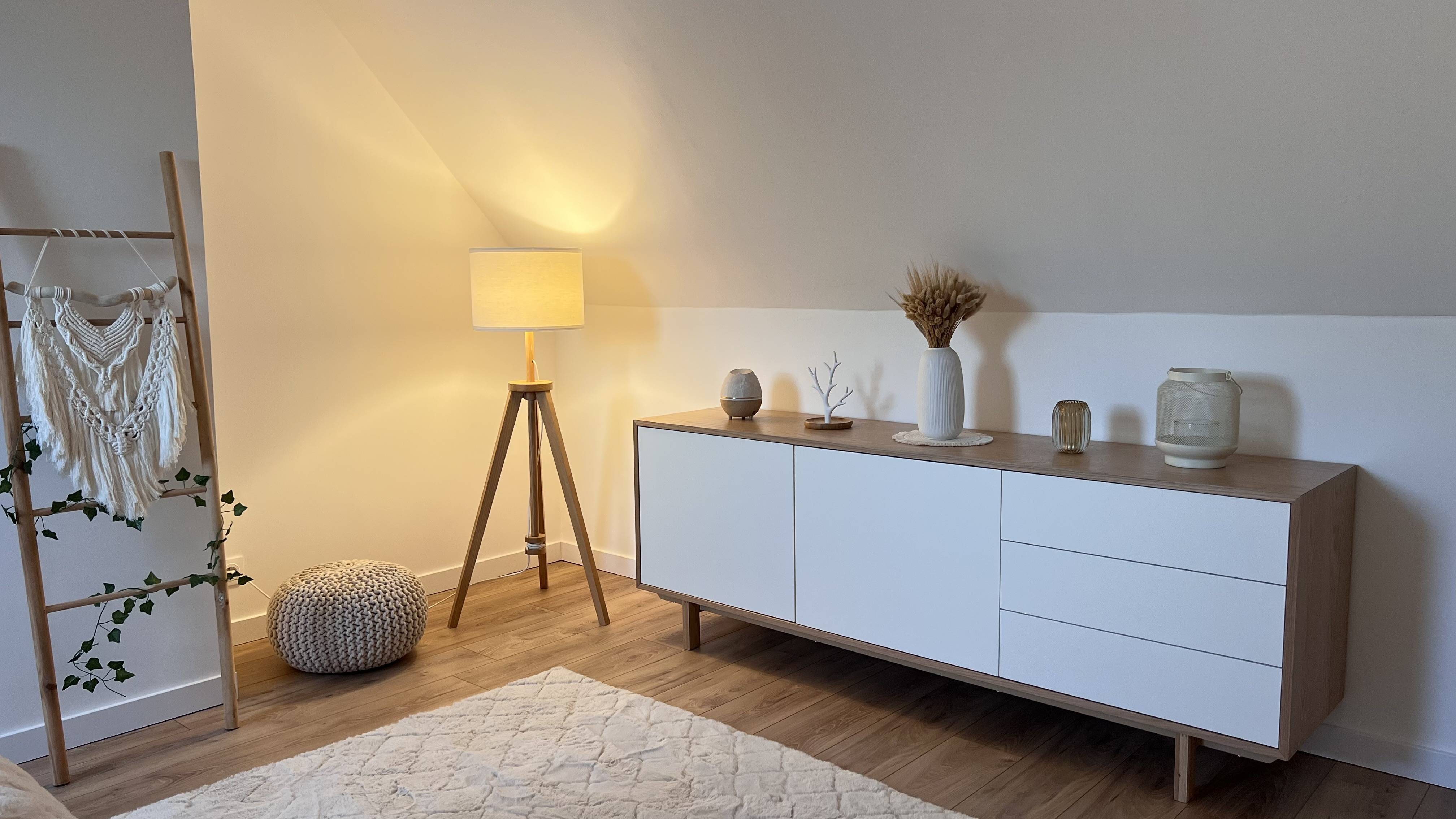 Outre la praticité de ce buffet bas SID, c'est son look scandinave, qui mêle des couleurs douces et neutres comme le bois clair et le blanc, qui attire l'oeil. Grâce à son look moderne et ses lignes épurées, il se fondera parfaitement dans une salle à manger au look contemporain. Et si vous aimez la déco, il sera parfait pour y disposer vos bibelots ou une belle lampe de table. Une façon de mettre en valeurs vos accessoires préférés.