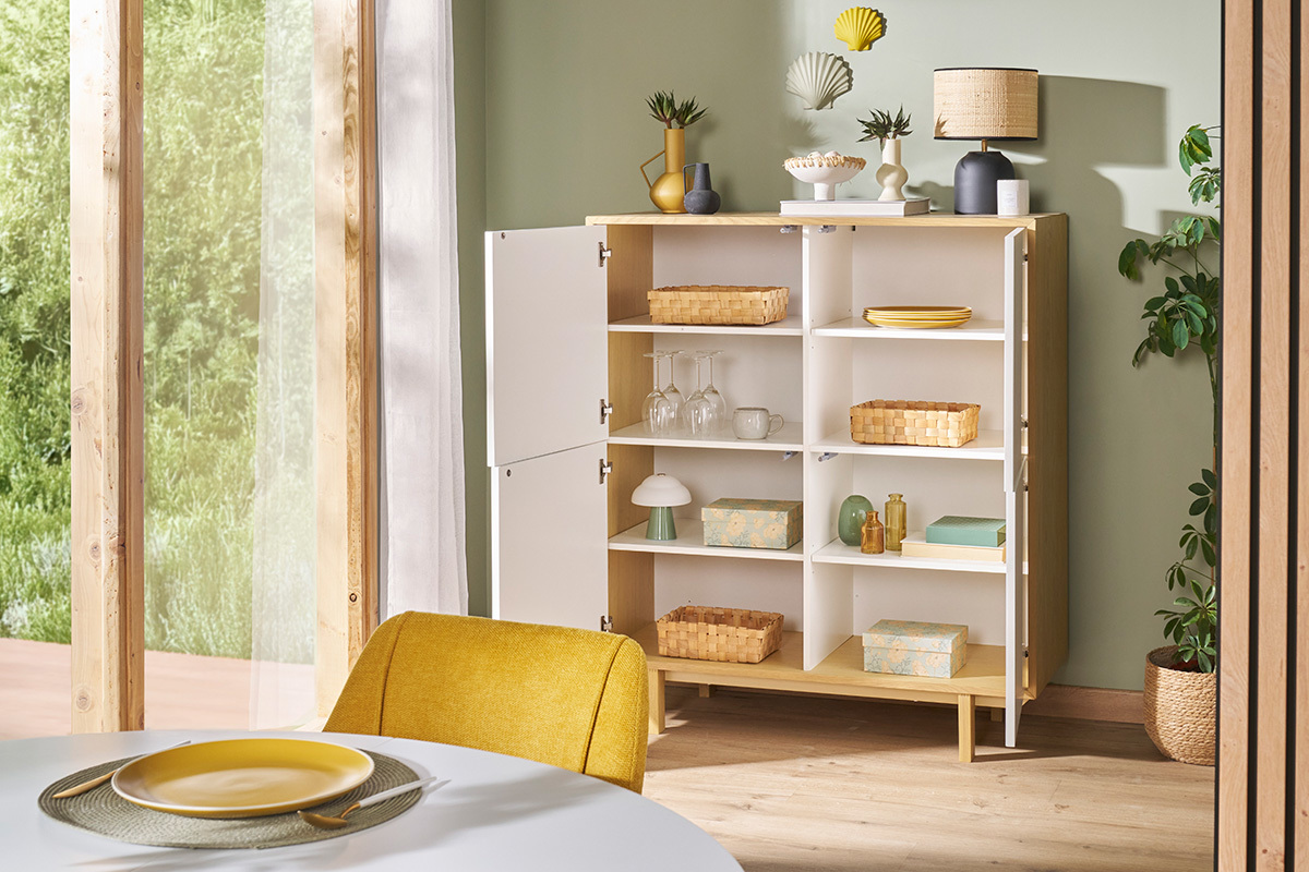 Laissez-vous séduire par le fort potentiel de rangement de ce buffet haut SID !