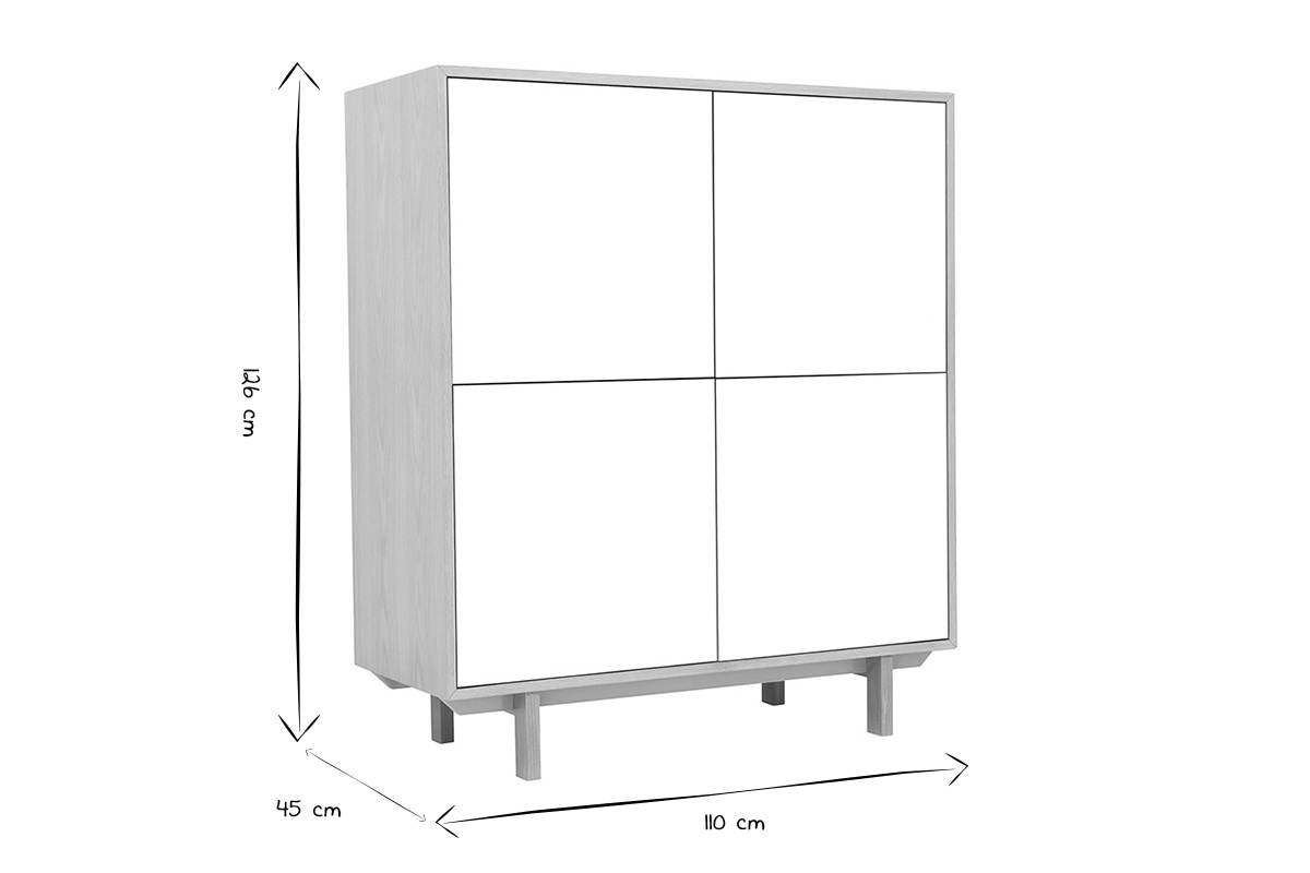 Grâce à ses 4 portes et 6 étagères (3 de chaque côté), ce petit buffet aux dimensions L110 x P45 x H126 cm offre de beaux compartiments de rangements (au total 8 espaces de rangements) pour déposer assiettes, plats imposants mais également votre linge de table comme vos serviettes ou nappes. Une aubaine pour les pièces de vie où chaque m² compte !