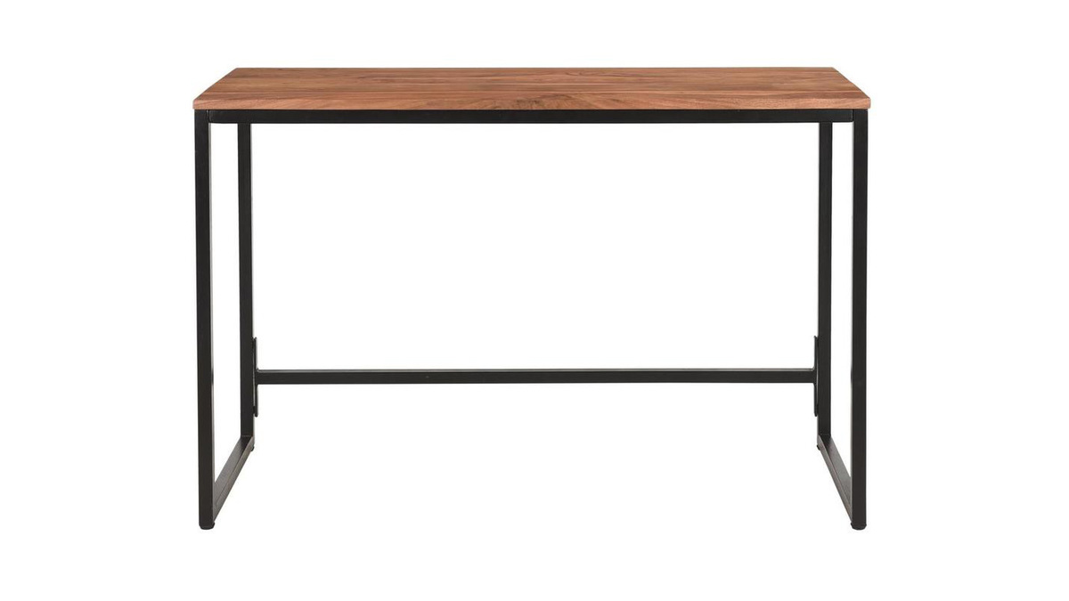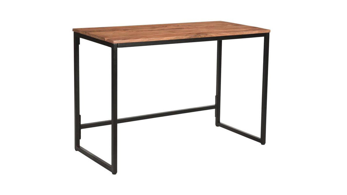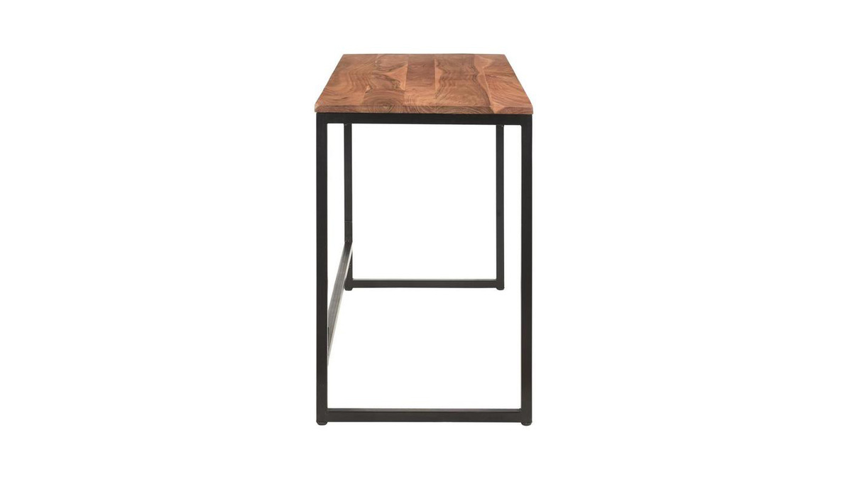 Bureau industriel bois massif et métal noir L115 cm HOORN livré prêt à monter.