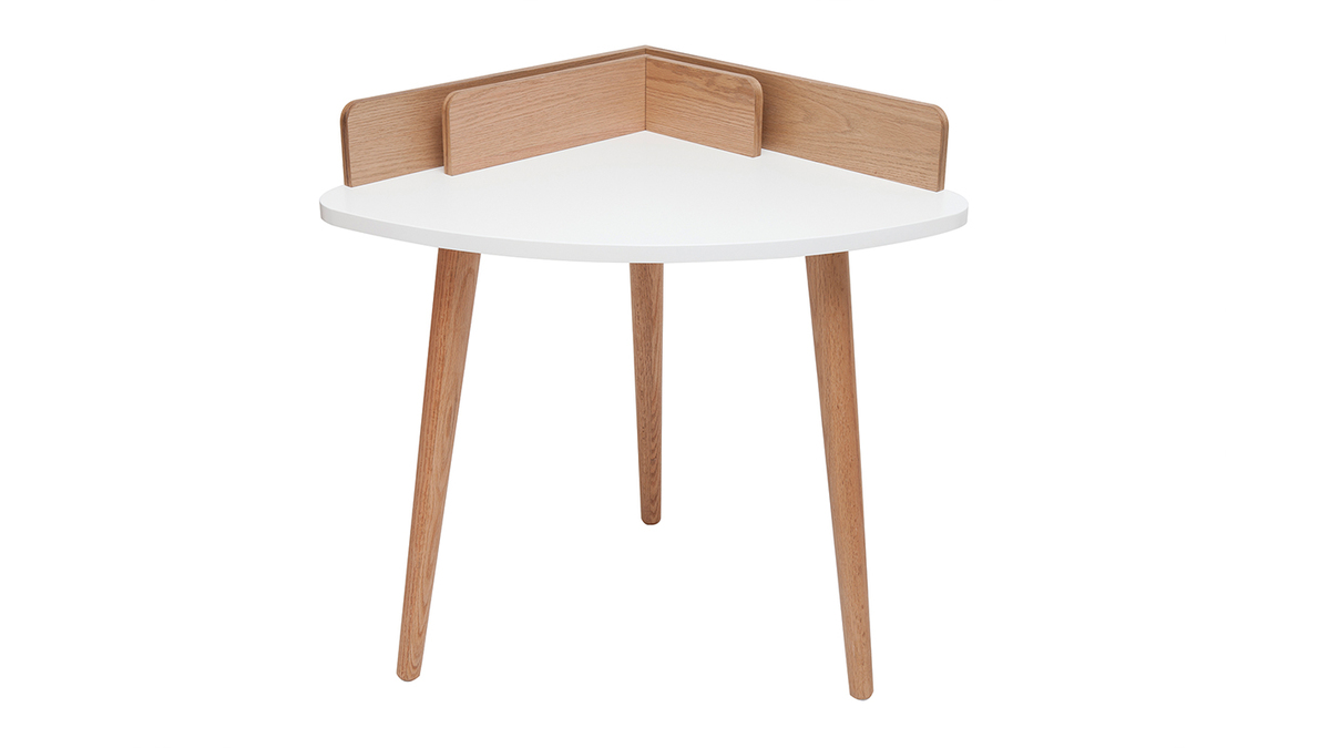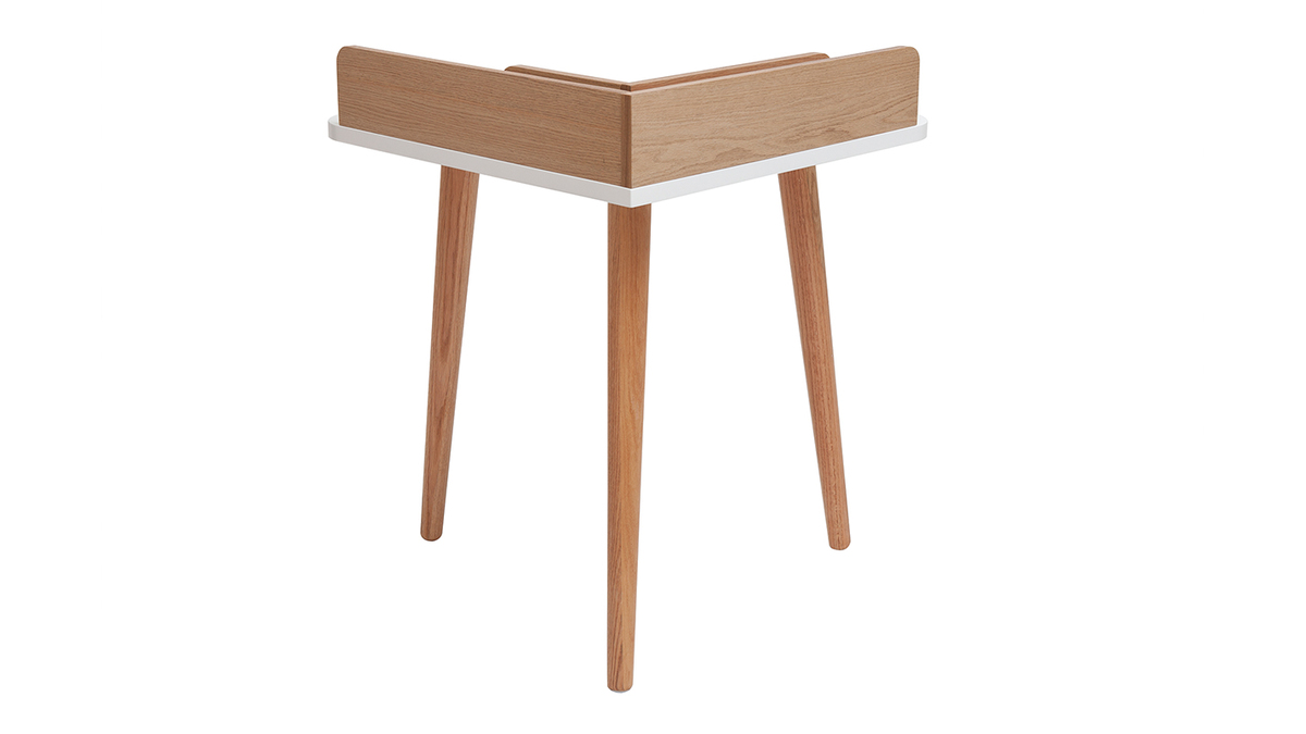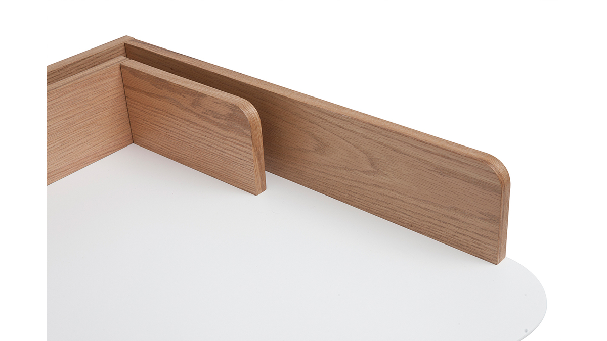 Parce que le bureau d'angle TOGARY doit pouvoir se glisser dans les moindres recoins, il a été travaillé dans un style intemporel. Son plateau blanc mat, ses tablettes placage chêne et son piètement en bois massif se fondent dans tous les styles déco. Une petite chaise de bureau à roulettes scandinave et ce petit espace de travail devient aussi fonctionnel qu'un grand !