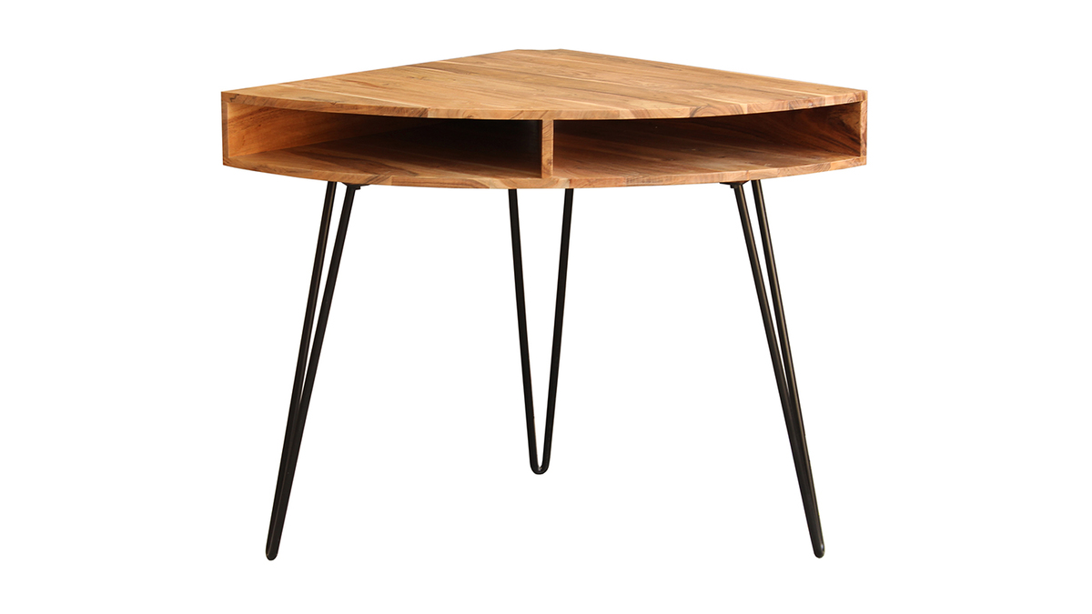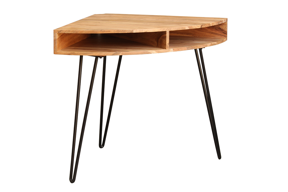 Pratique avec style, le bureau d'angle en acacia massif et métal noir GOSBY a tout pour plaire !