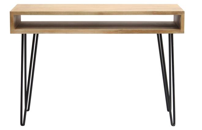 Avec son design versatile et essentiel, ce bureau « gain de place » pourra aussi faire office de console dans une entrée. Grâce à sa faible profondeur (45 cm) et sa grande légèreté visuelle, il est l'allié des petits espaces. Il s'intégrera à merveille dans une entrée à la décoration vintage ou une pièce de vie au style bohème chic. Pour un maximum de confort et de style, accompagnez-le d'un joli fauteuil de bureau.