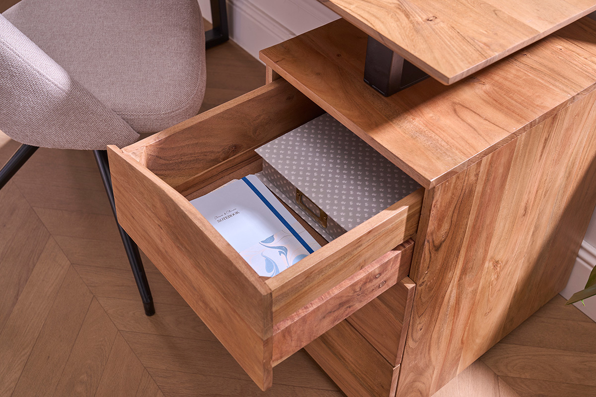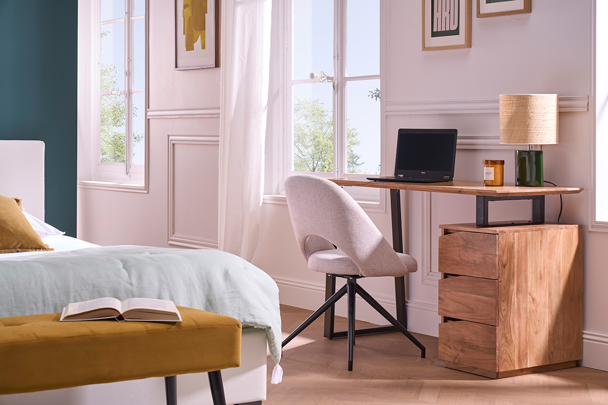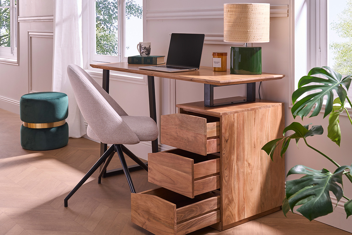 Le bureau HORACE en acacia massif et métal noir est idéal pour aménager un espace de travail tendance et authentique !