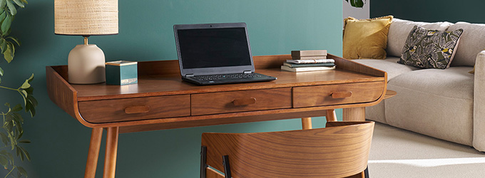 Bureau connecté multimédia avec tiroir en verre noir et bois foncé noyer L120 cm CLEVER