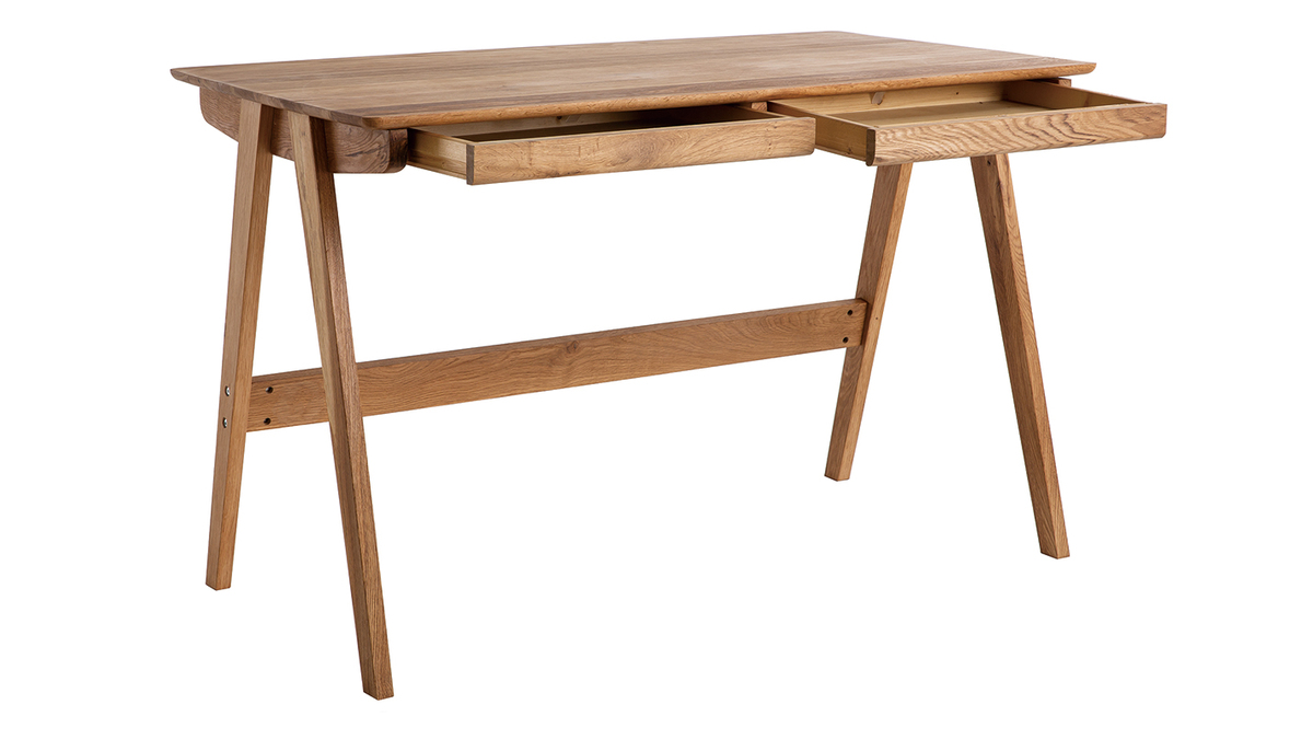 Le bureau 2 tiroirs CASSIA est d'une élégance rare. Conçu intégralement en chêne massif huilé, il possède tout ce qui fait le charme des meubles en bois massif. On aime particulièrement le bois qui le compose. Il offre naturellement un rendu plein de nuances différentes donnant un style unique à l'ensemble. Le minimalisme de la forme de ce bureau en bois et la part belle faite au naturel évoque le design scandinave. Ses lignes nordiques précises et ses magnifiques tons chauds en font une vraie pièce de caractère.