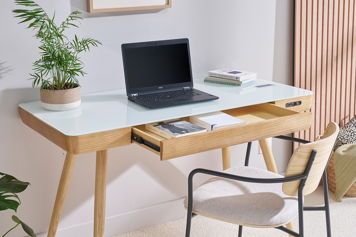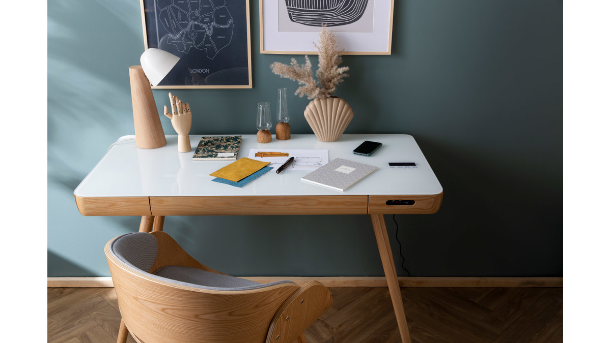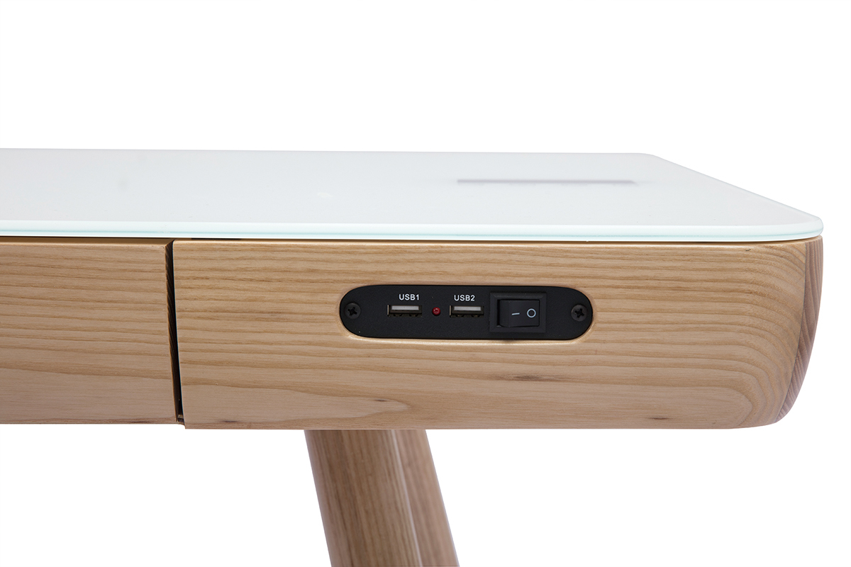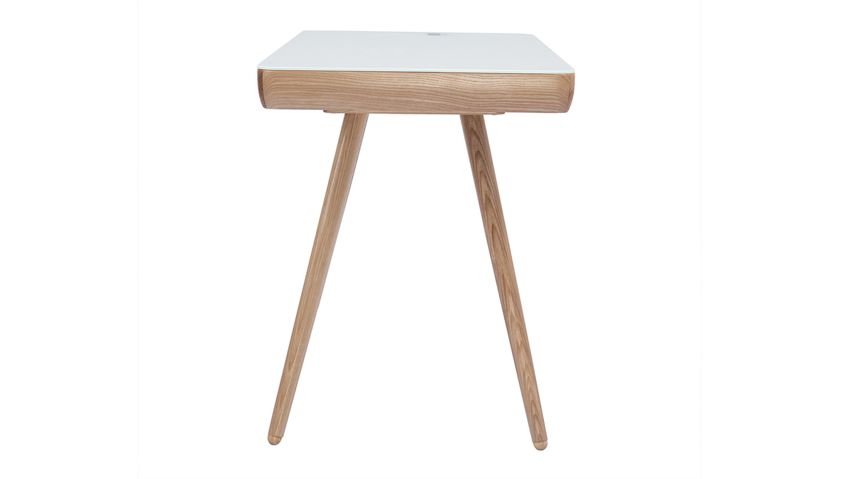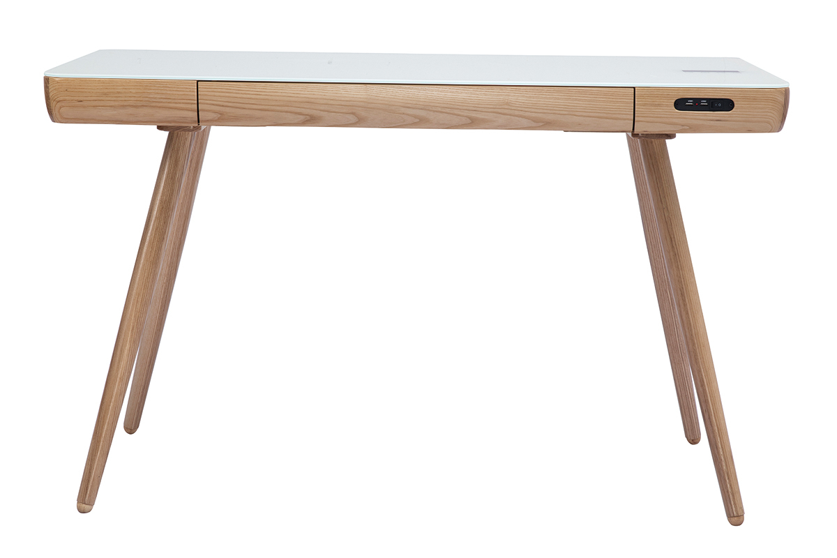 Comme nous aimons le design autant que la facilité d'utilisation de nos meubles, le bureau connecté multimédia CLEVER ne déroge pas à la règle. Son plateau est en verre tandis que ses pieds et sa structure sont en frêne. Un large tiroir vous permettra de ranger tous vos accessoires de travail.