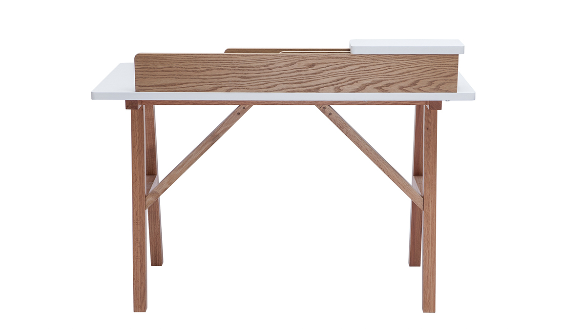 Ce bureau à rangements dans l'air du temps se mariera autant à une chaise de bureau design que nordique.