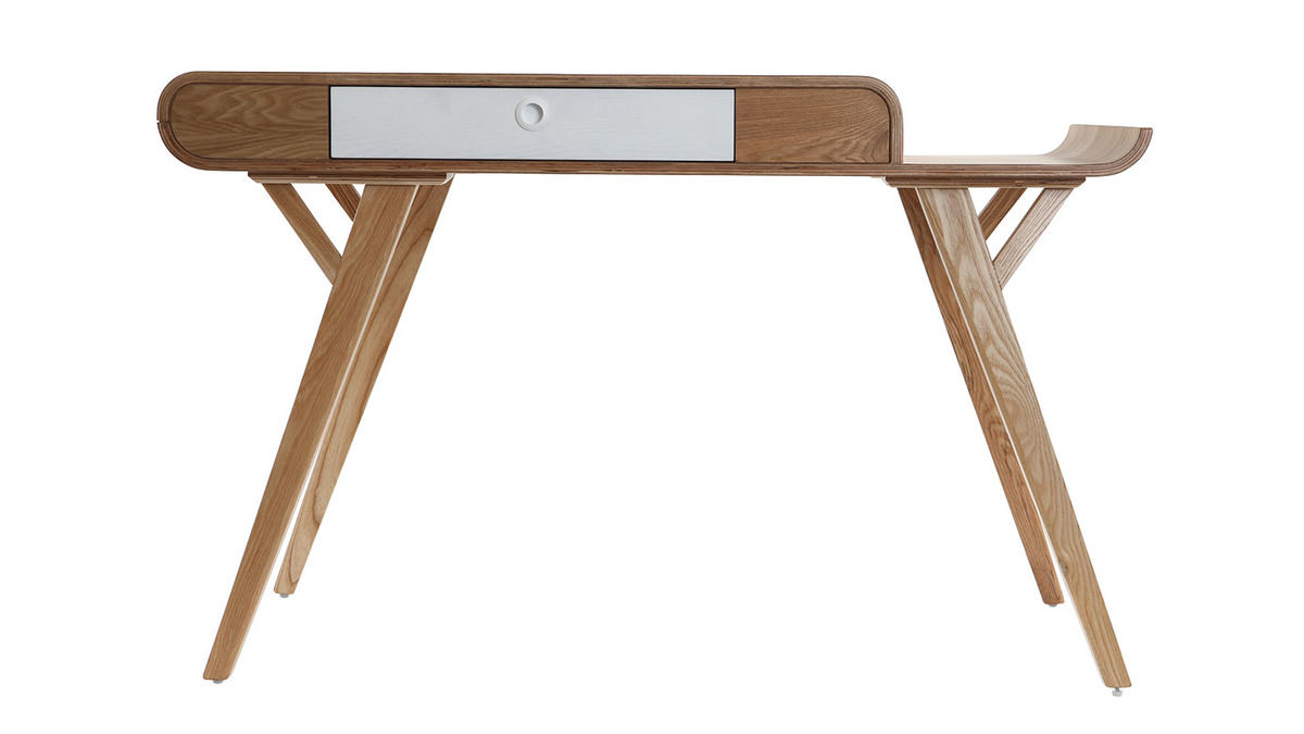 Son piètement en bois massif et son plateau en placage frêne associé à un tiroir blanc lui donnent un charme inconditionnel. Unique, ce bureau pourra parfaitement s'intégrer dans une pièce à vivre. Son design original en fait une pièce déco à part entière qui trouvera sa place dans un séjour ou une chambre sans les dénaturer. Pour faire du coin bureau un espace tendance, on complète le modèle KYOTO avec un fauteuil de bureau design.