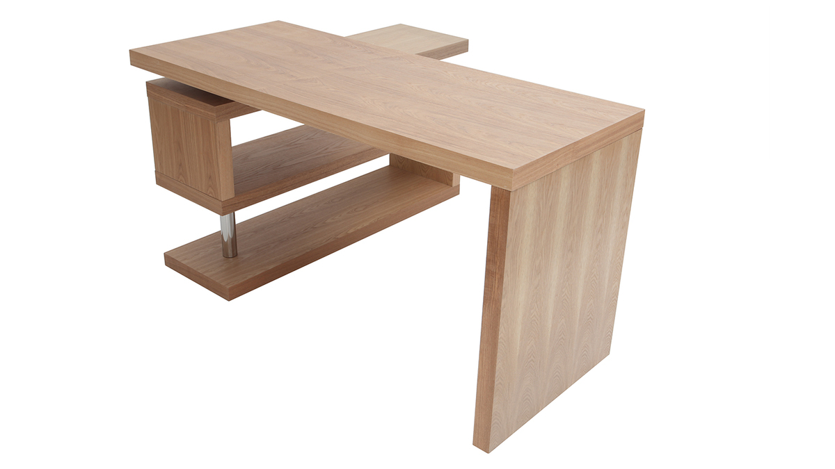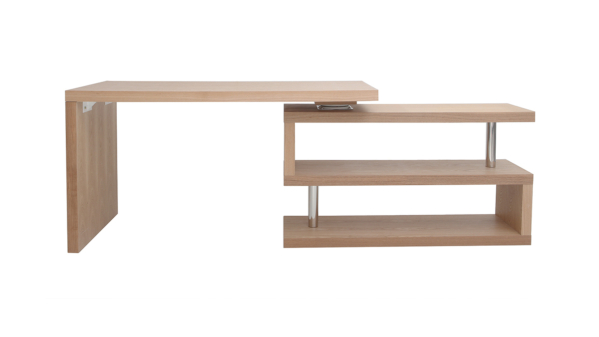 Composé de panneaux de fibres de bois placage chêne, ce bureau offre un rendu moderne et tendance. Il intégrera aussi bien un espace de travail contemporain qu'un bureau dans l'esprit nature et zen. Grâce à son système d'étagère rotative, ce bureau peut être disposé dans n'importe quel espace. Il passe d'un bureau tout en long à un bureau en angle droit en un clin d'oeil. Vous pouvez ainsi moduler l'espace en fonction de vos besoins et de vos envies.